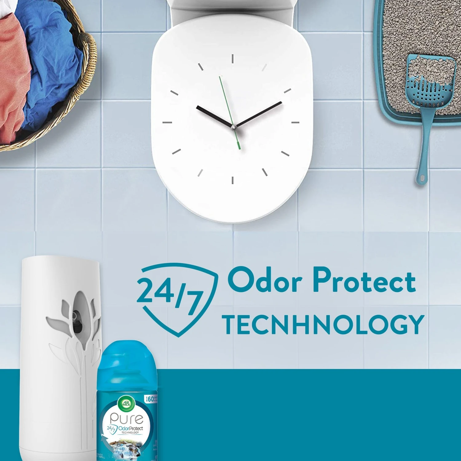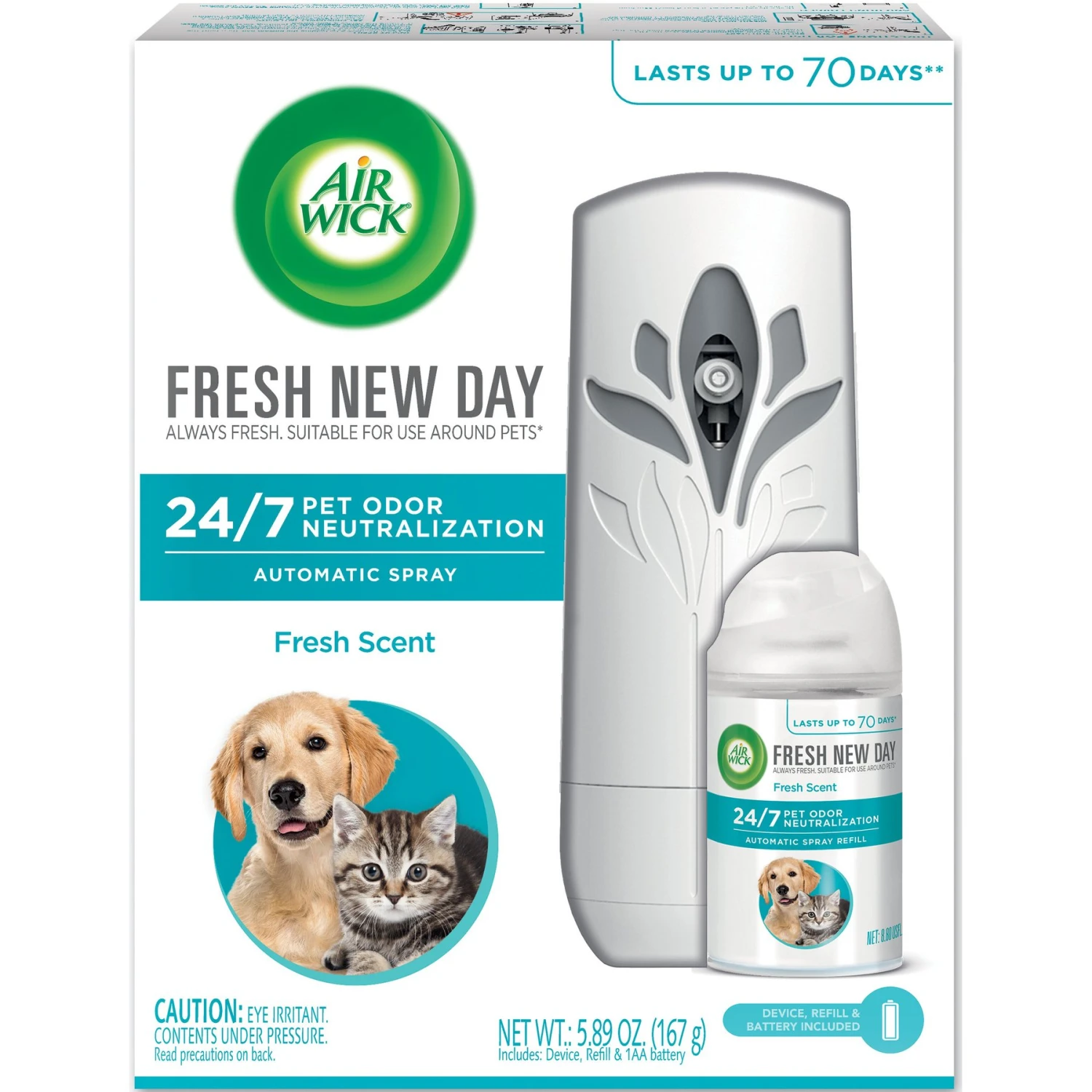 Fill your home or office with a continuous fresh scent using Air Wick Freshmatic Essential Oils Ultra Fresh Fragrance Air Freshener Starter Kit. The convenient starter kit features special technology that fights odors around the clock, so it’s paw-fect for homes with furry friends! Each essential oil refill provides continuous fragrance for up to 60 days on the low setting, so you don’t need to constantly refill it. Choose how often you want the burst of scented spray—at 9, 18 or 40-minute intervals. You can paw-sonalize it to suit your needs. It’s perfect for the bathroom, living room, office or den. You and your guests can breathe easy knowing your home smells fur-esh and clean no matter what your buddy gets into!