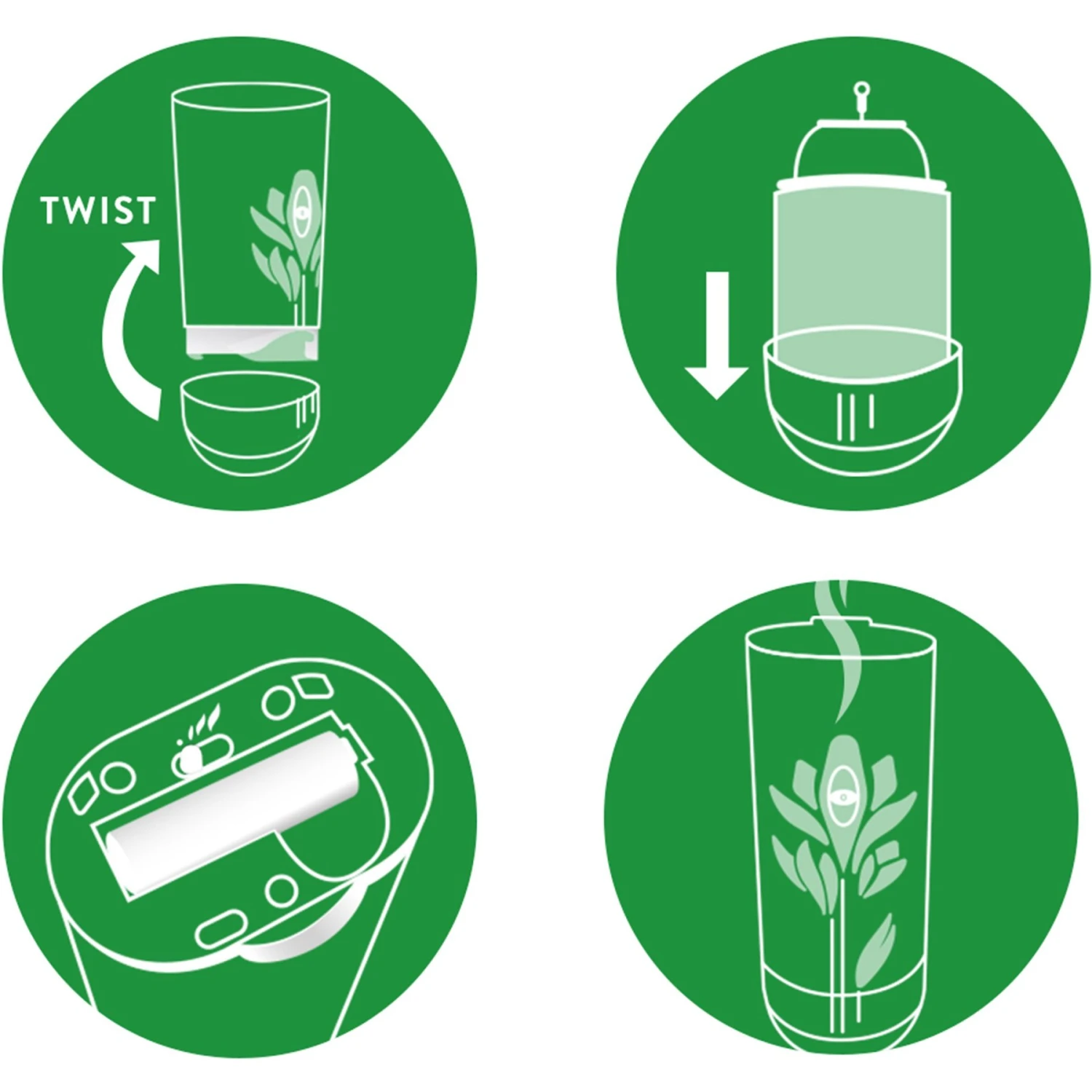 Only use Air Wick refills. To replace empty can with this refill, first turn your Air Wick Automatic Spray Unit to the off position. Discard the empty can and make sure that the red lever is pushed up. Insert this refill with the nozzle facing outward per the picture on the right. Set the device by setting the fragrance intensity control to the needs of your home: low, medium, high. The first spray will come after a 15 second delay. Keep unit directed away from your face at all times.