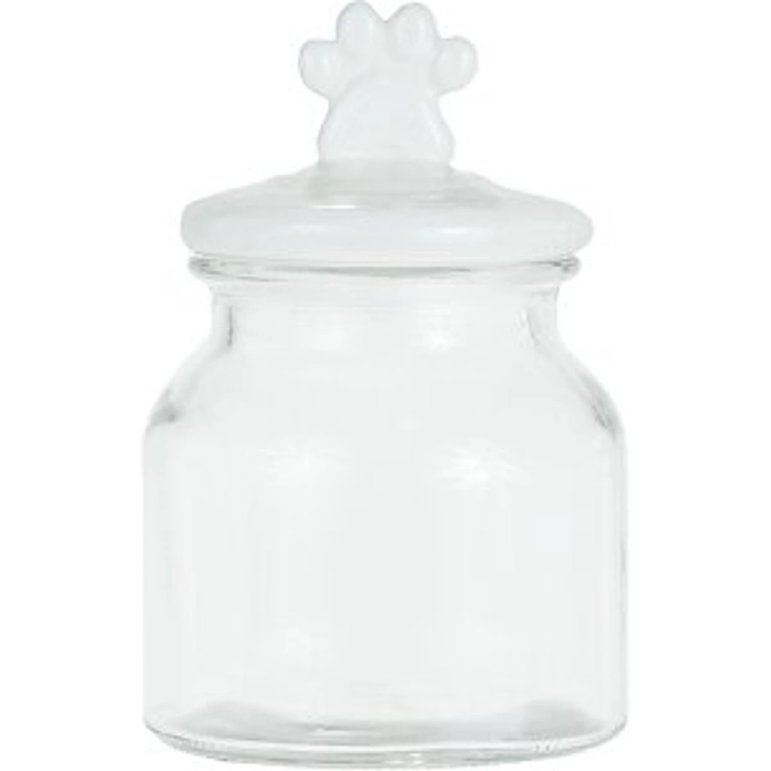 - Durable jar with a tight-fitting lid safely stores food or treats where paws can’t reach.