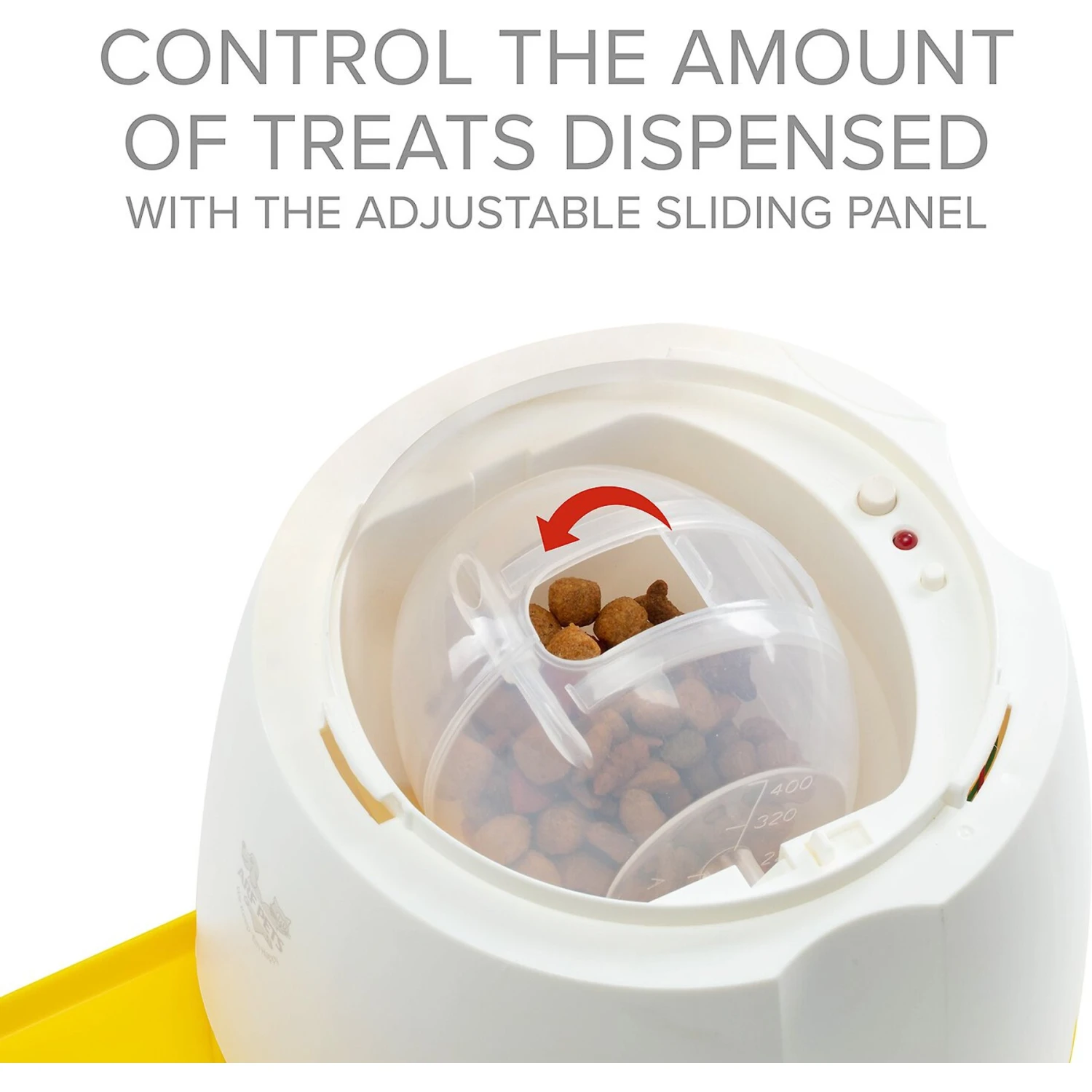 - Two dog-friendly sounds play to let your dog know that her treats are coming.