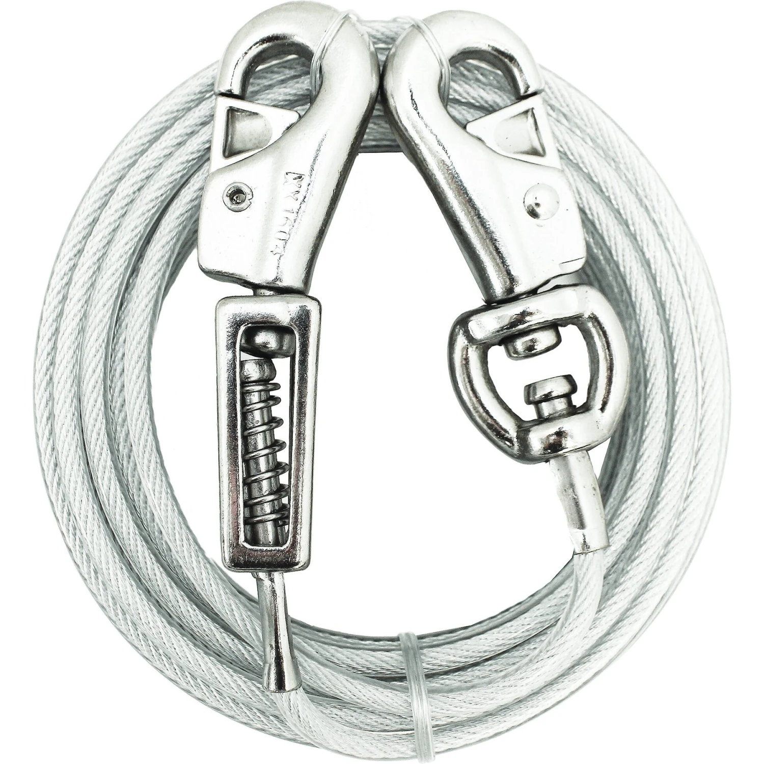 - Tie-out is made to clip onto lawn stakes or anchors to secure dogs in unfenced yards.