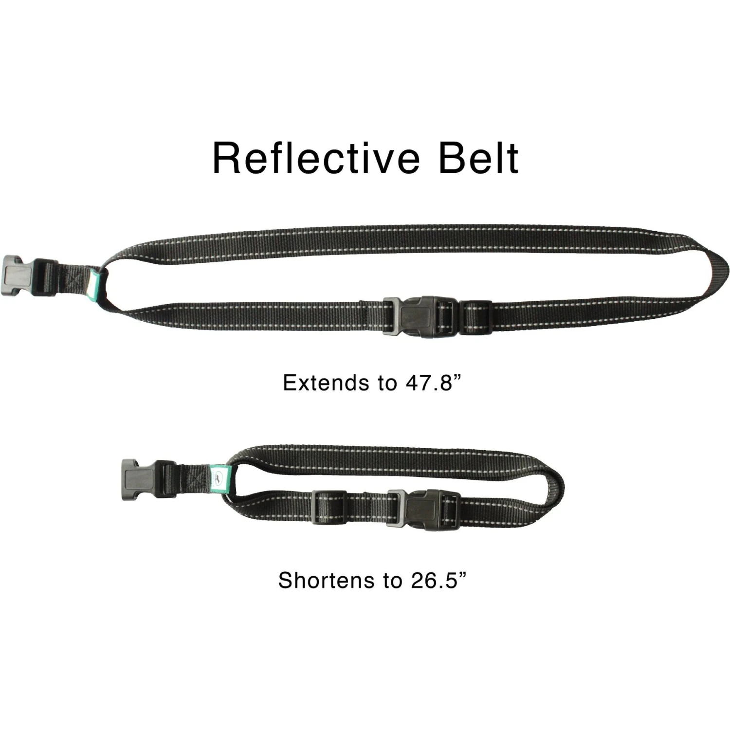 - The leash and belt are lined with reflective thread for safe nighttime runs, and they’re water-repellent and mildew resistant to hold up in all types of weather