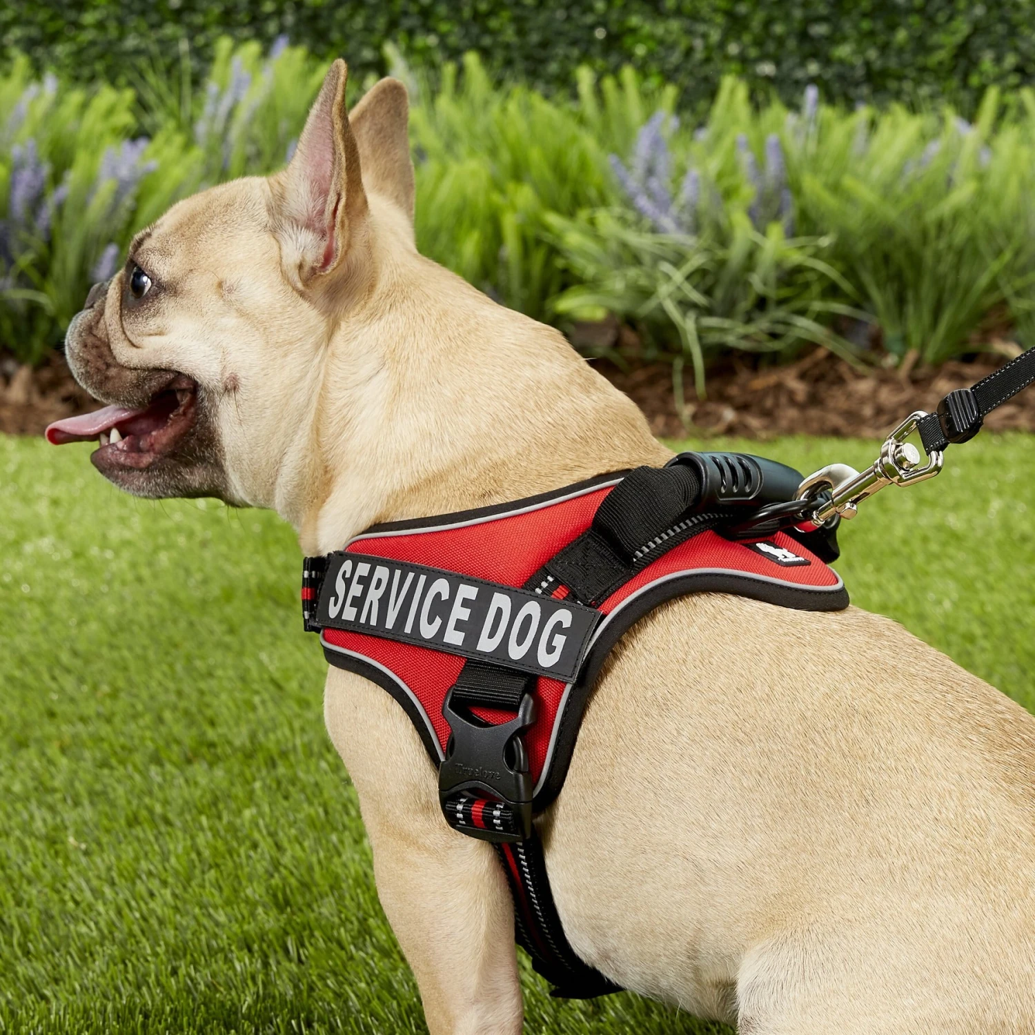 - Reflective and removable Service Dog patches on either side of the harness increase visibility in low lighting.