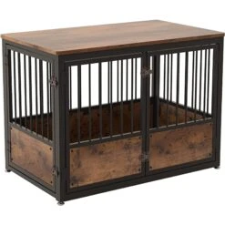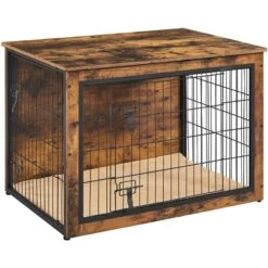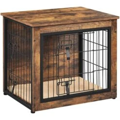 Unipaws Furniture Style Dog Crate With Tray, Rustic Brown, Small