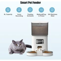 Bueteka Automatic Food Dispenser With Splitter & Stainless Bowls Cat & Dog Feeder, 6-lit