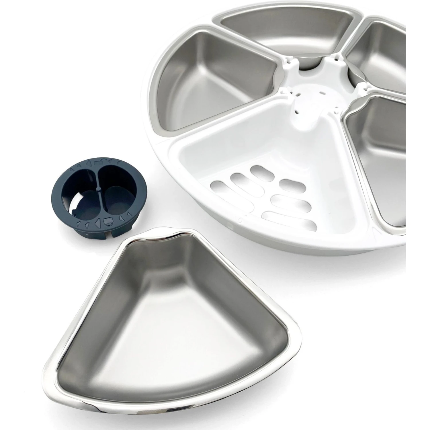 - Features five BPA- and BHT-free, commercial-grade, stainless-steel bowl inserts.
