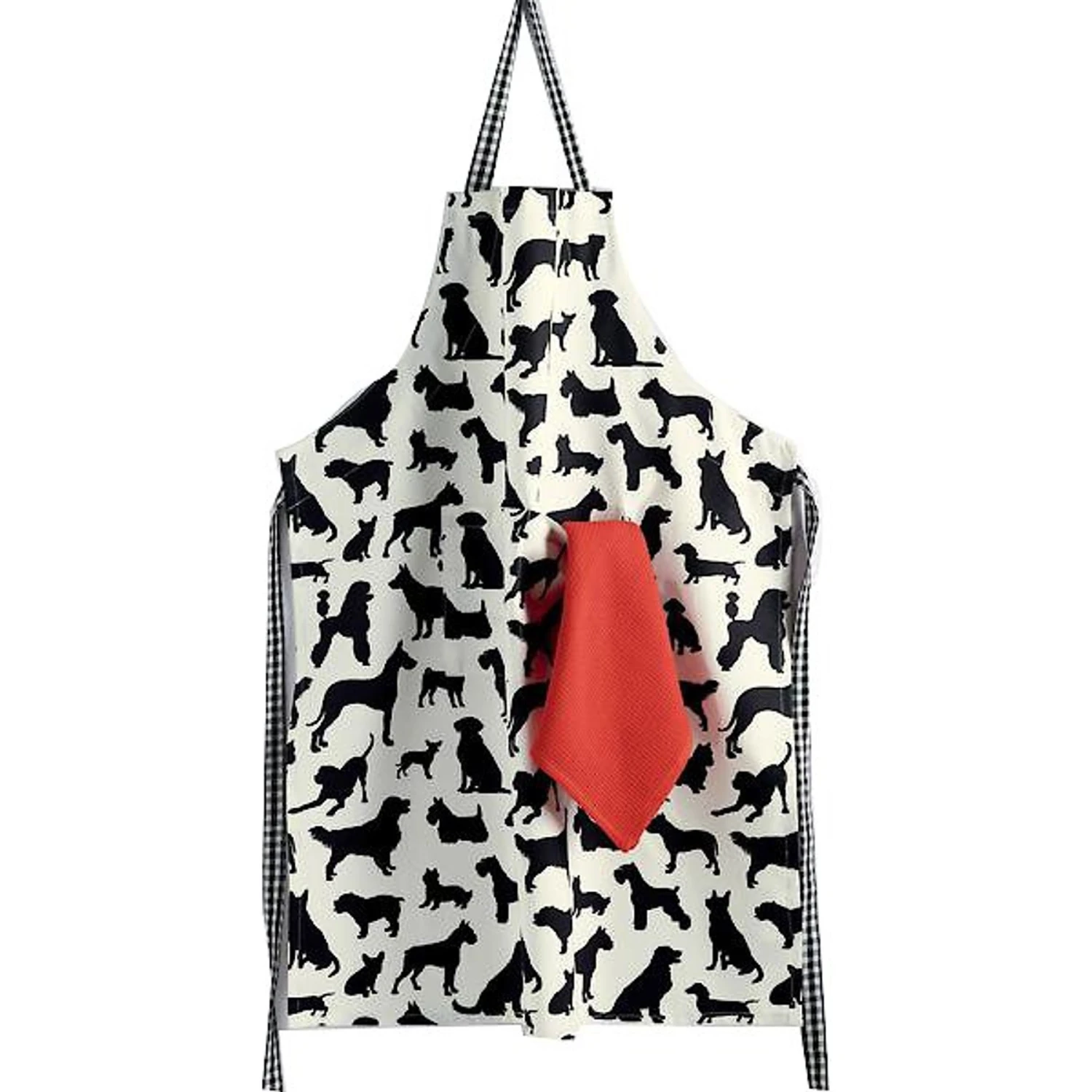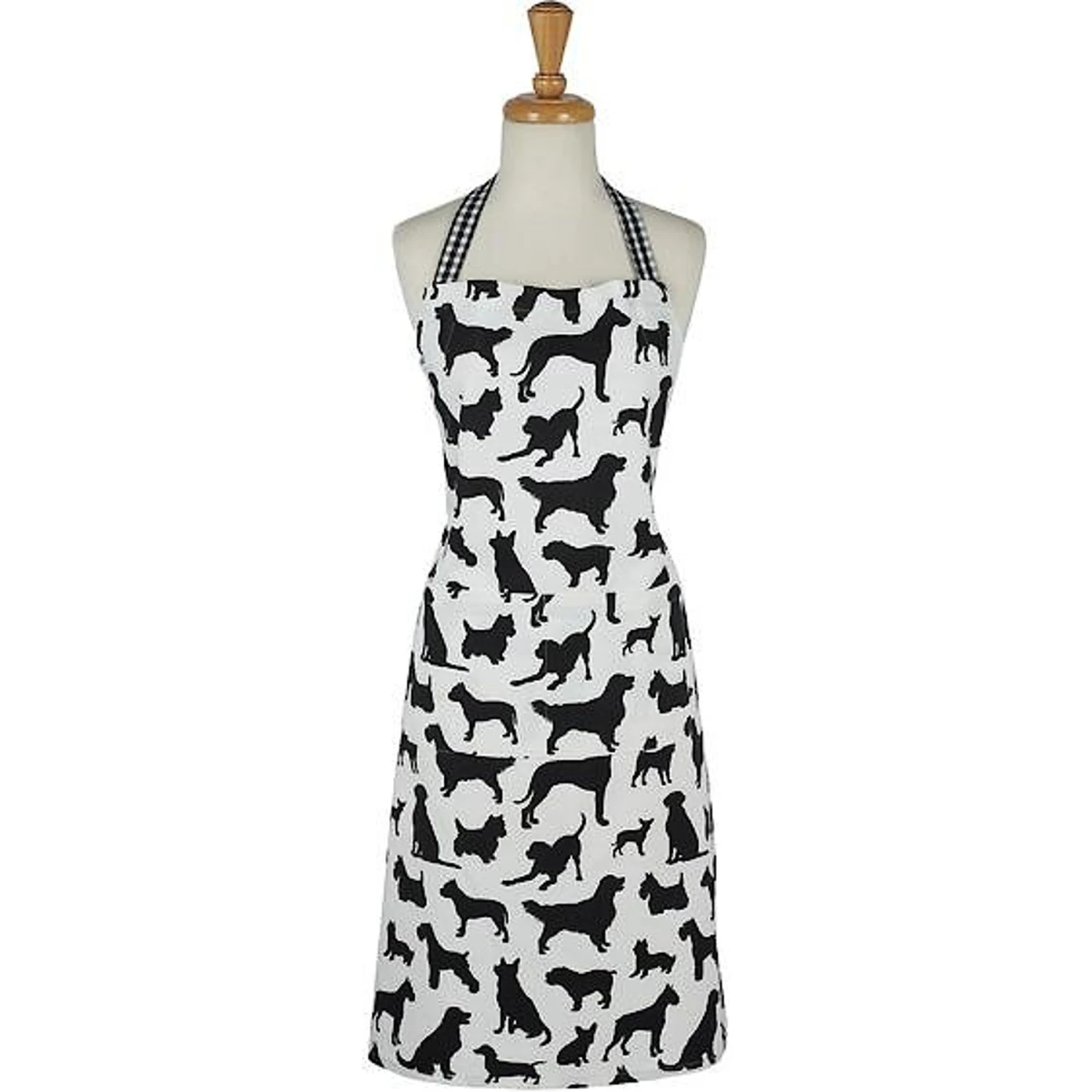 - Apron is covered in playful silhouettes of dogs to celebrate a canine love.
