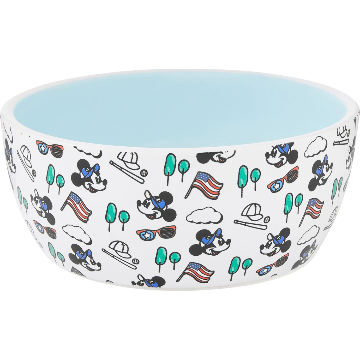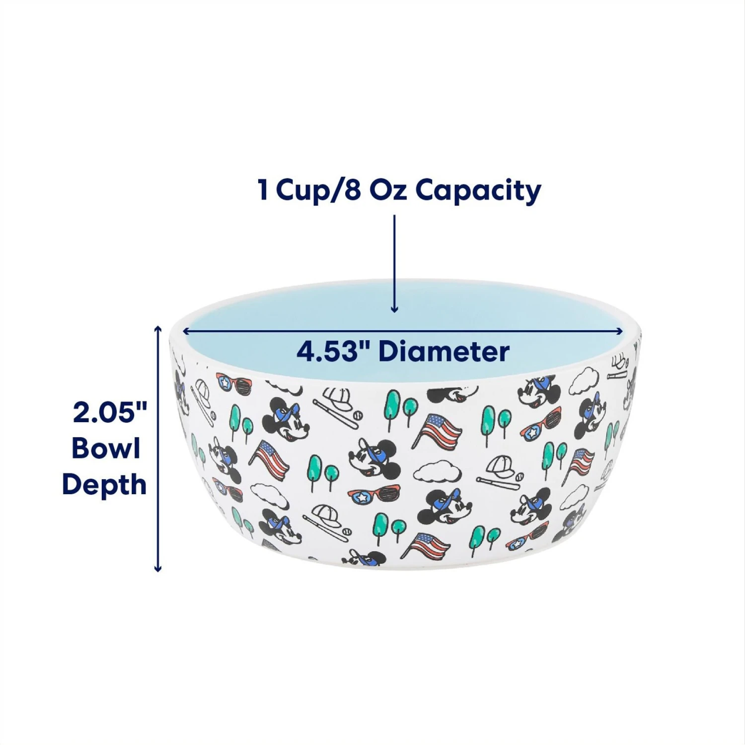 - Ceramic bowl comes in white with Mickey Mouse printed all over to make mealtime more fun.