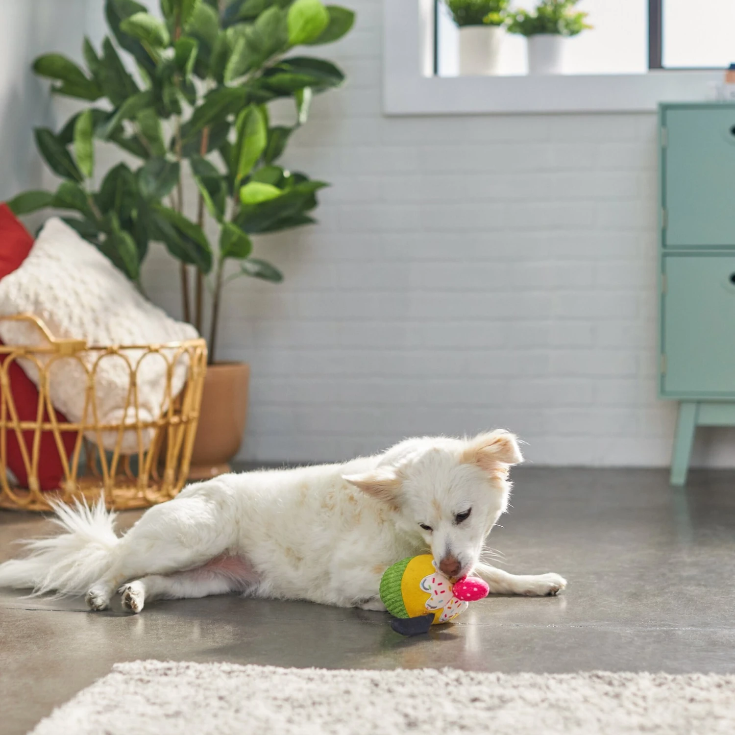 - Cupcake-shaped Pluto plush complete with floppy ears makes a sweet addition to your pup’s toy box.