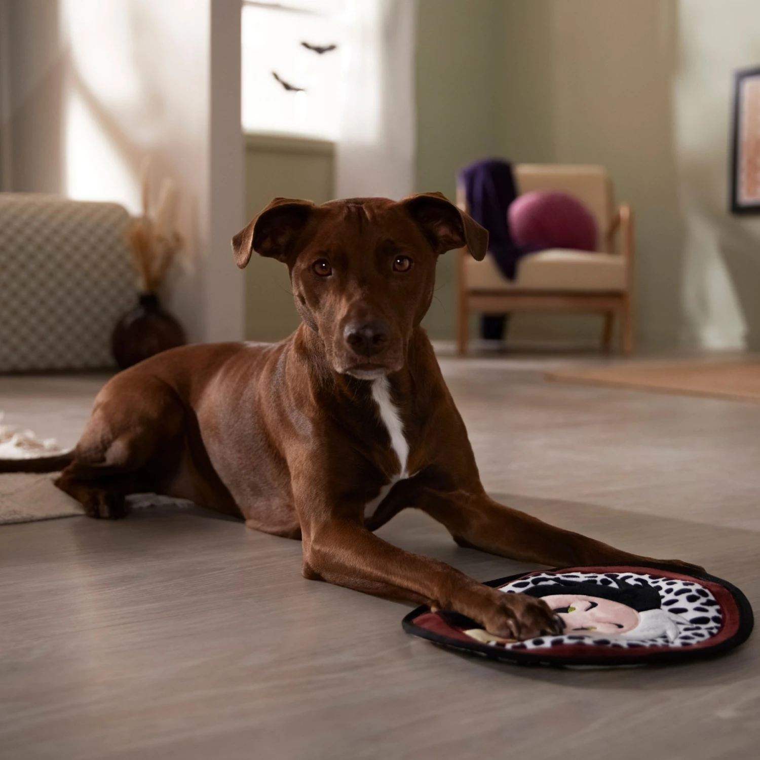 - Flat plush squeak toy features Cruella de Vil for some on-the-spot fun—from The Disney Collection, available only at Chewy.