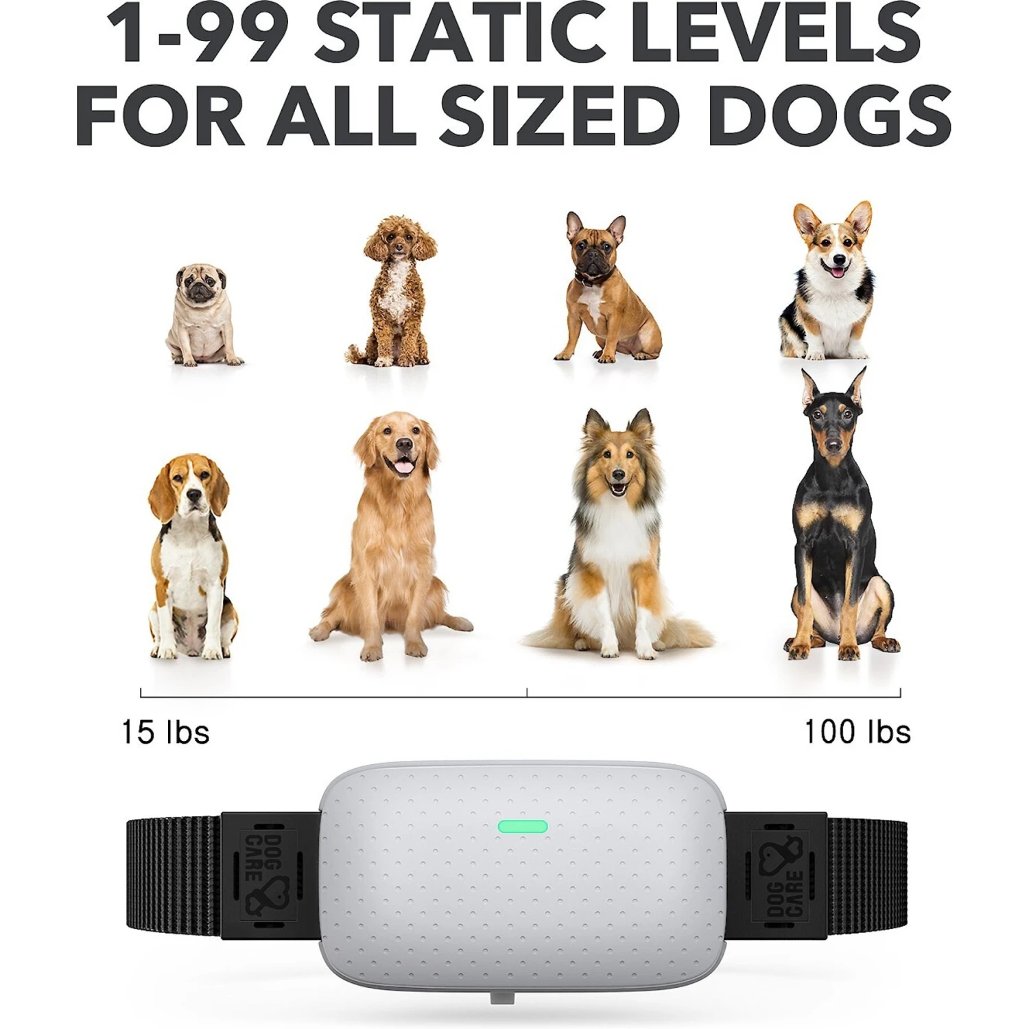 - The rechargeable dog collar features 3 training modes that are safe for your dog—beep, vibration and shock. These modes can be controlled using the included remote.