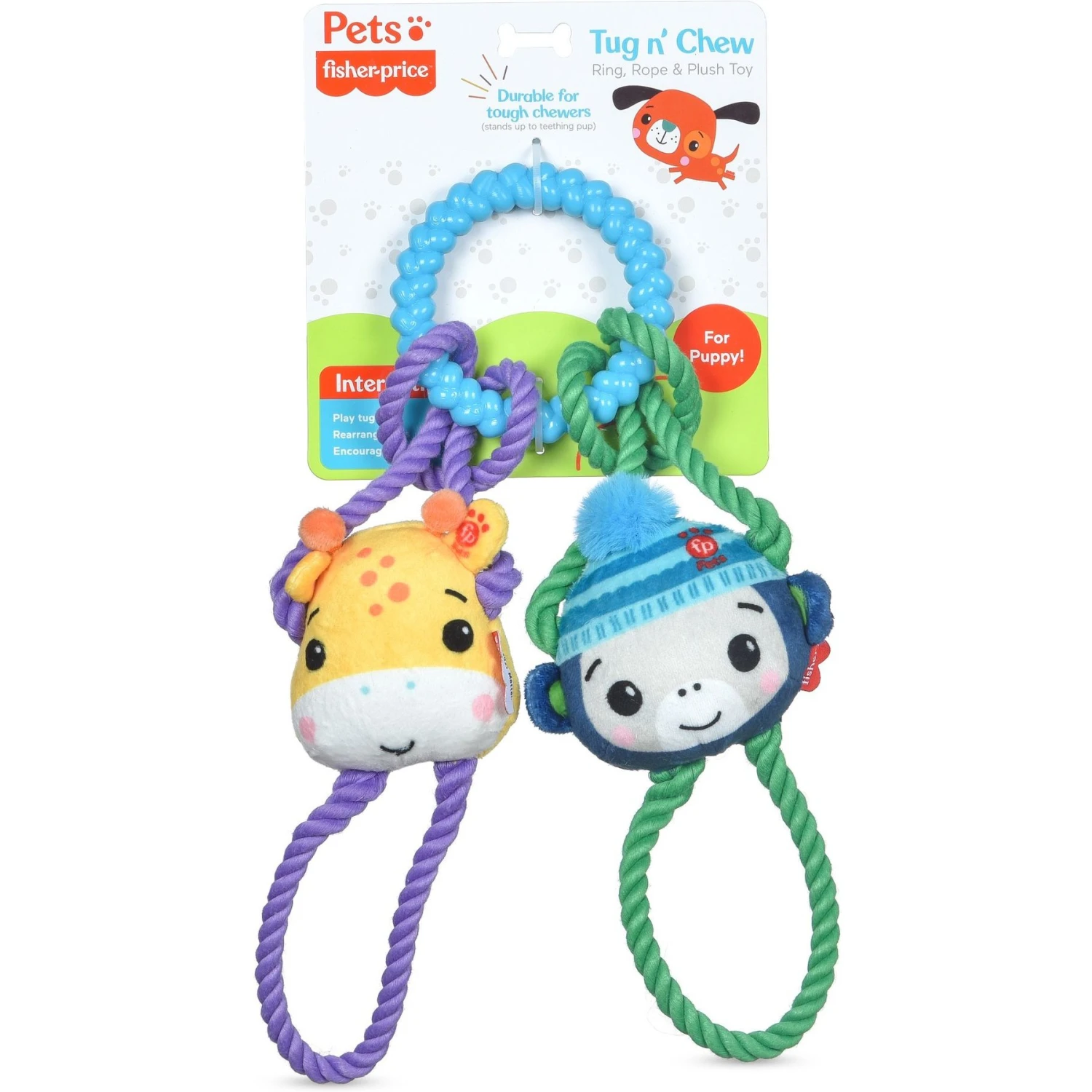 - Puppy tug play toy features ropes with easy-to-grab plush—paw-fect for a light tug-of-war with your pal.