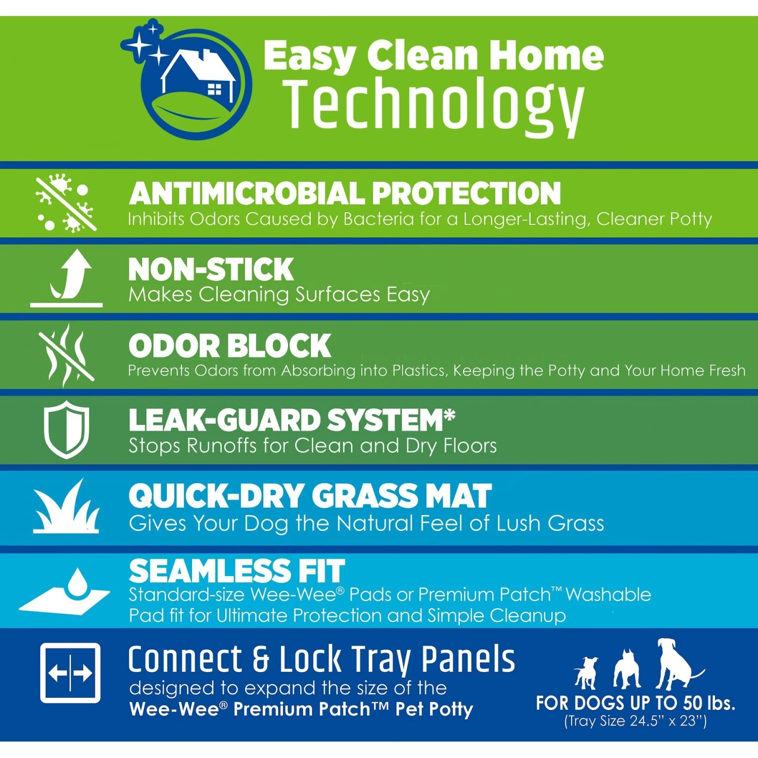 - This expansion kit can be used with the Premium Pet Patch Potty (sold separately) to create a larger potty area for pups that need some space—no limit to how many panels you can add!