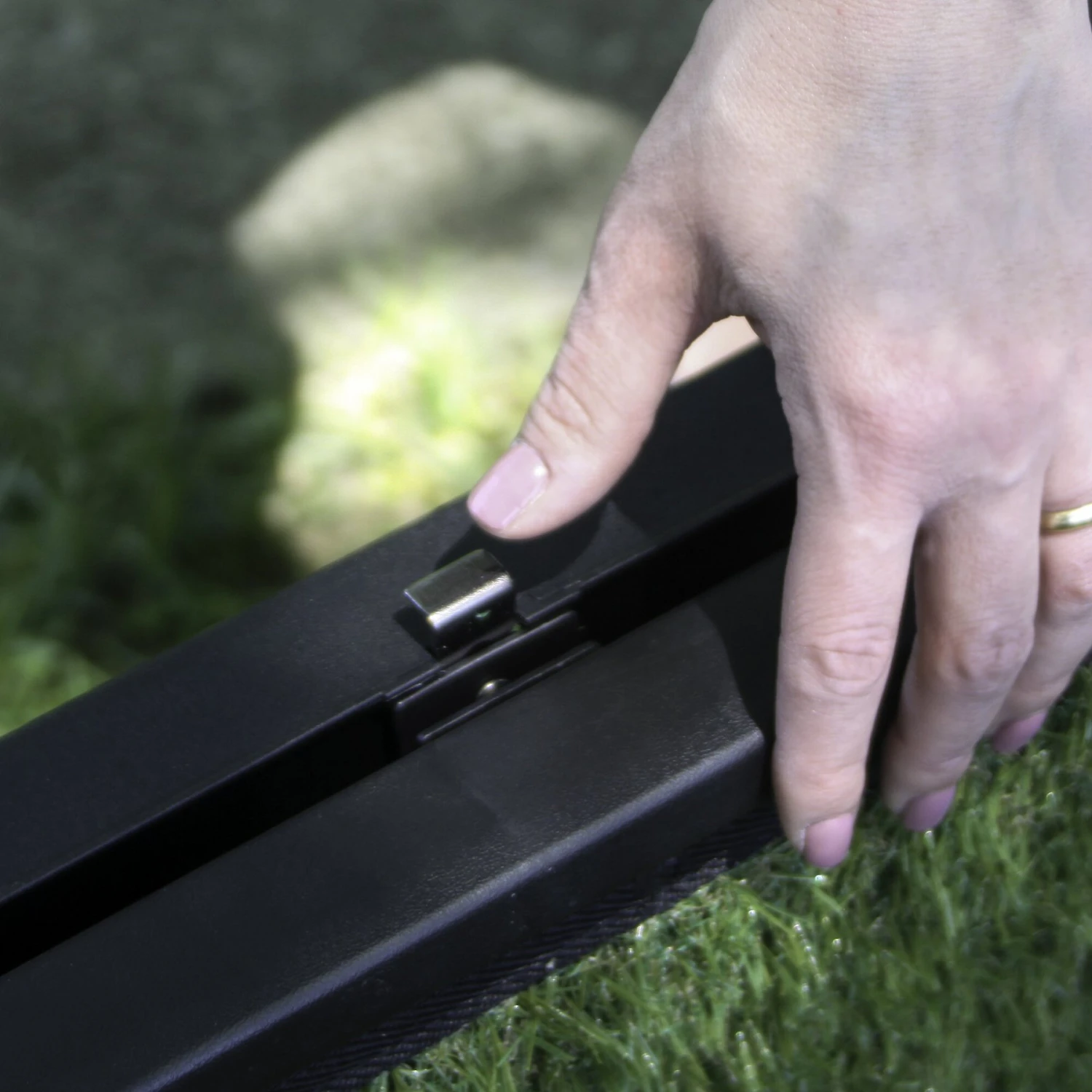 - The safe grip artificial turf tread is gentle on your pal’s paw pads.