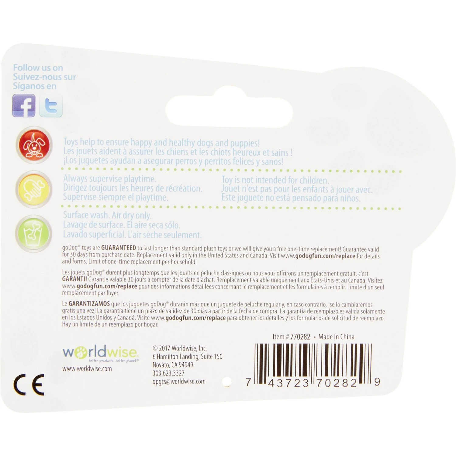 - Made using GoDog’s proprietary Chew Guard Technology, a manufacturing process that adds a durable liner to the soft plush toy.