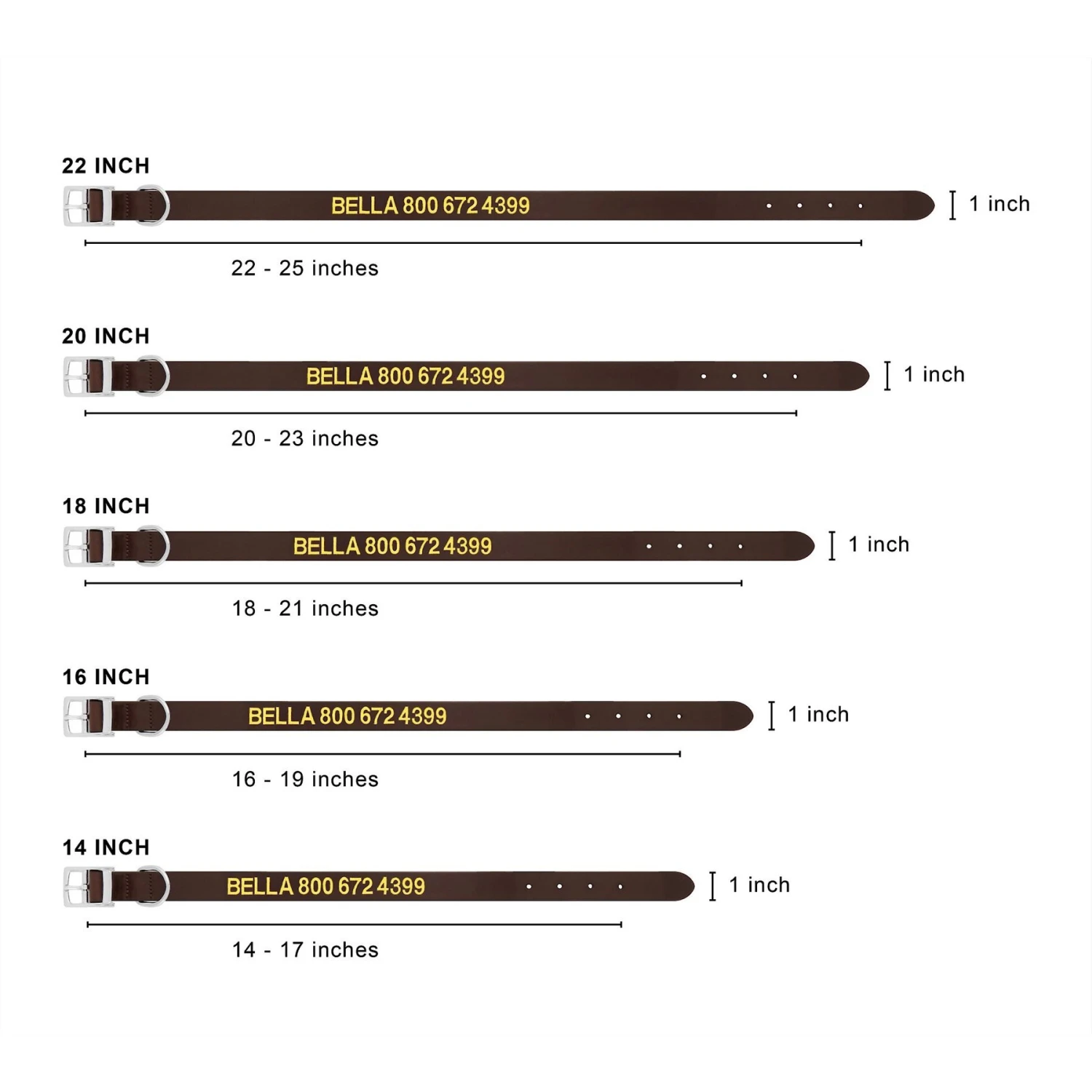 | Size | 18 to 21-in neck, 1-in wide, 20 to 23-in neck, 1-in wide, 22 to 25-in neck, 1-in wide, 16 to 19-in neck, 1-in wide, 14 to 17-in neck, 1-in wide |