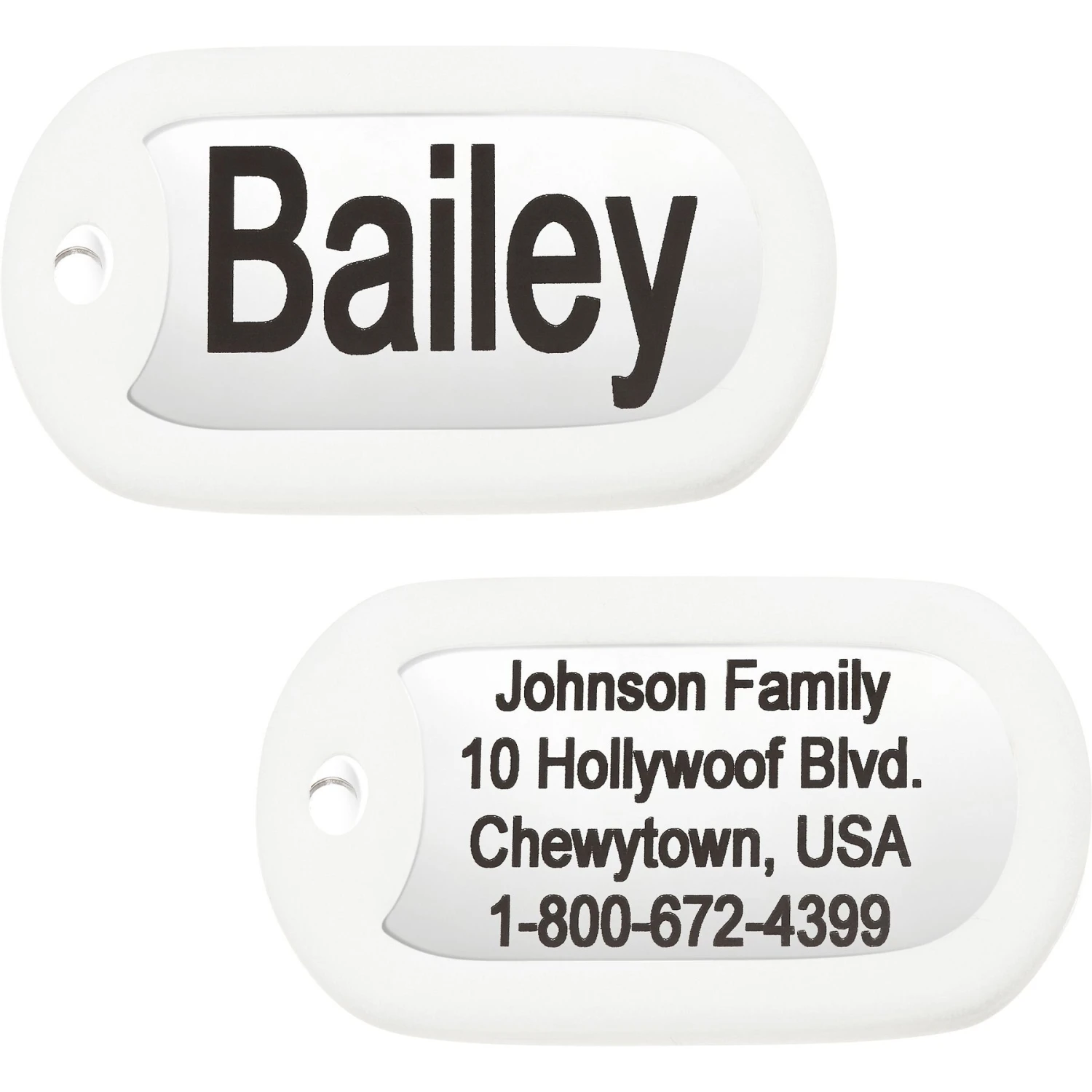 - This tag can be personalized with up to 4 lines of text on each side.