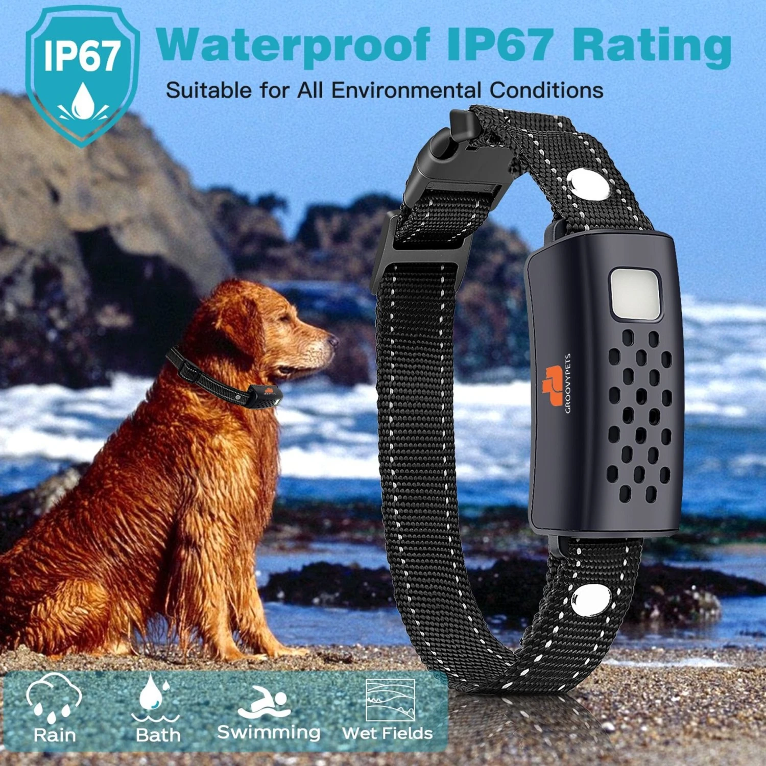 - Receiver is waterproof so your pup can wear it while swimming or playing in the rain.