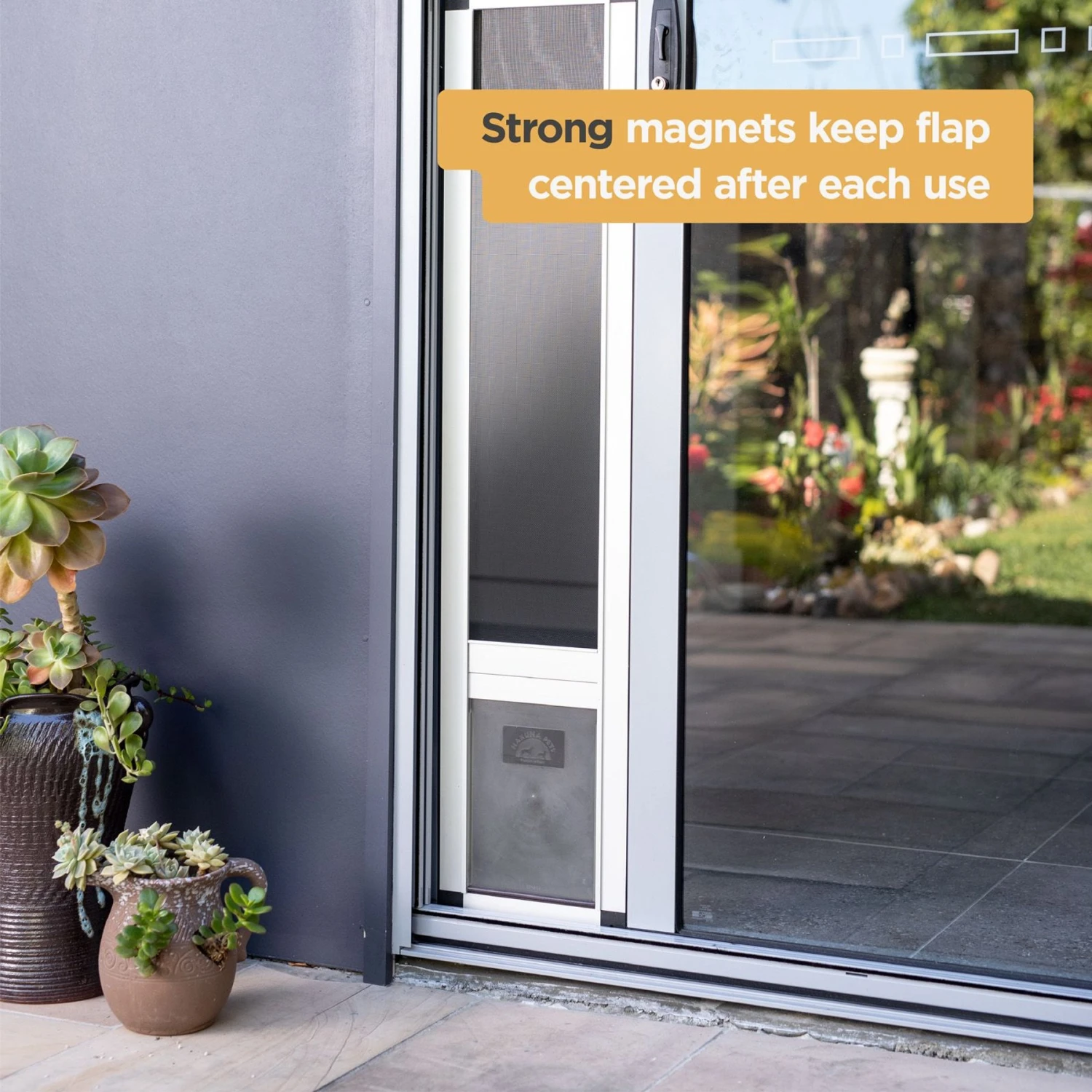 - The magnetic centering catch helps ensure the pet flap will stay closed when not in use.