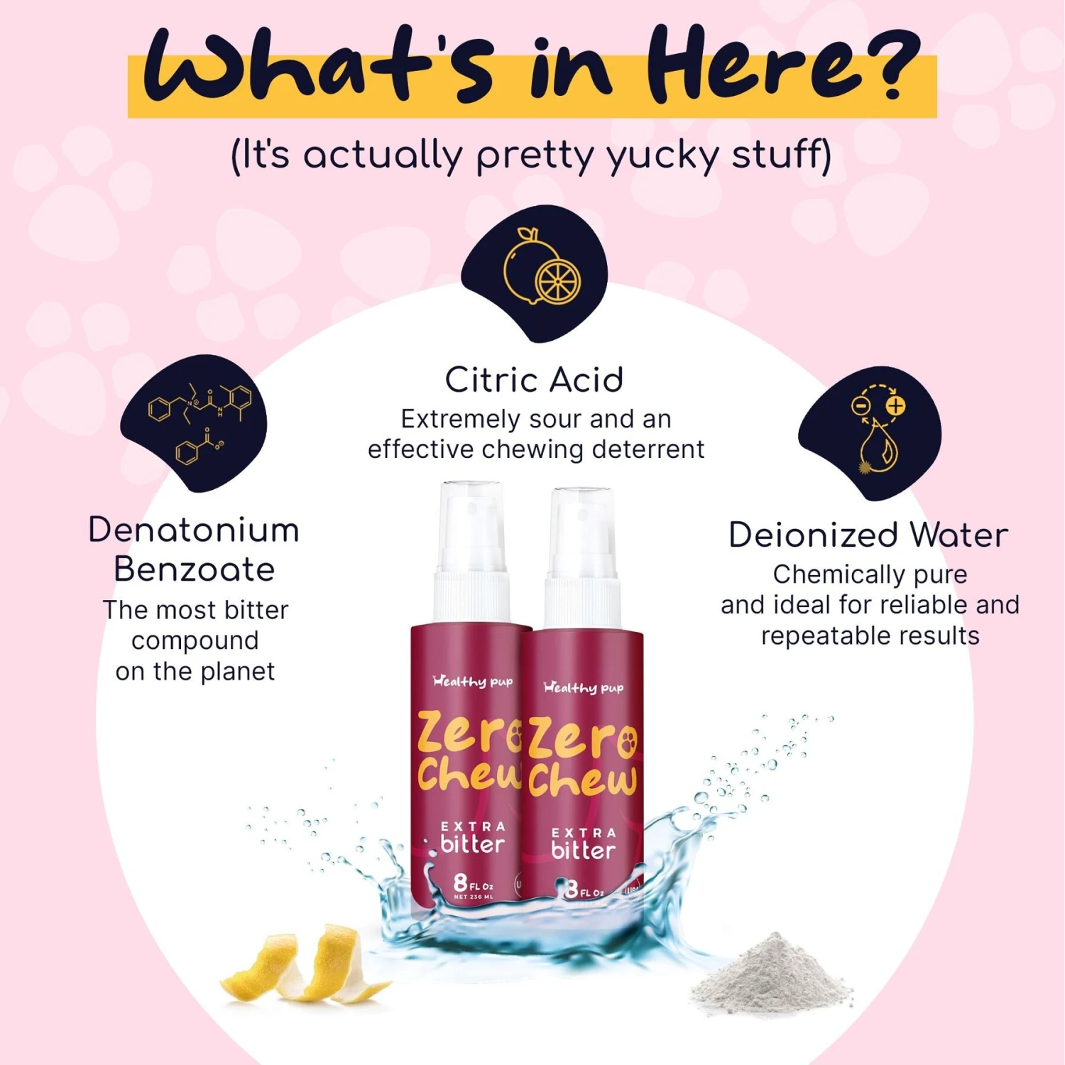 - Made with denatonium benzoate, the most bitter compound on the planet, without the use of alcohol or causing pain to your four-legged friend.