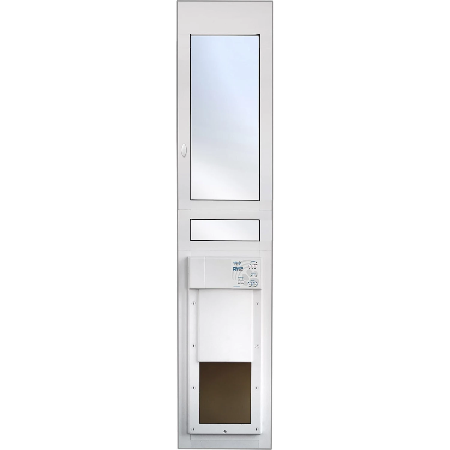- Features a fully automatic power pet door mounted in an energy-efficient dual pane for your paw-tner to pass through.