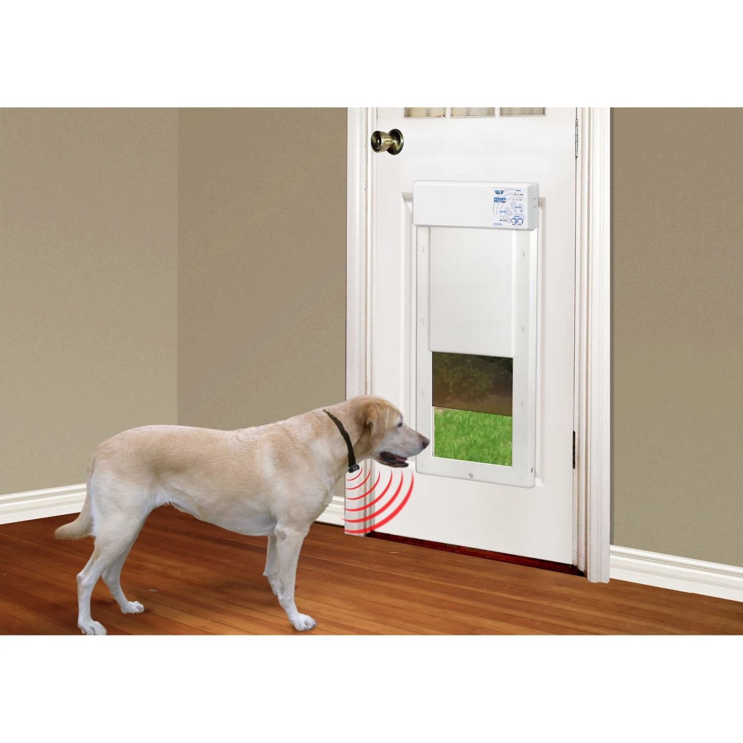 - Motor-driven pet door automatically opens upwards instead of outwards with the High Tech Pet Microsonic Collar. No pushing to open!