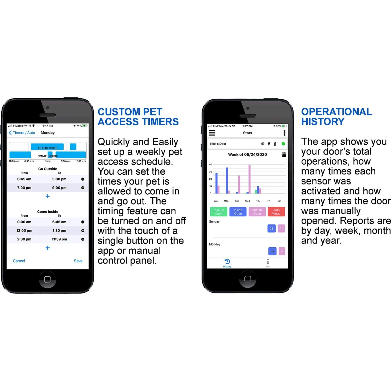 - Set an unlimited number of timers to control when your pet can go in or out.