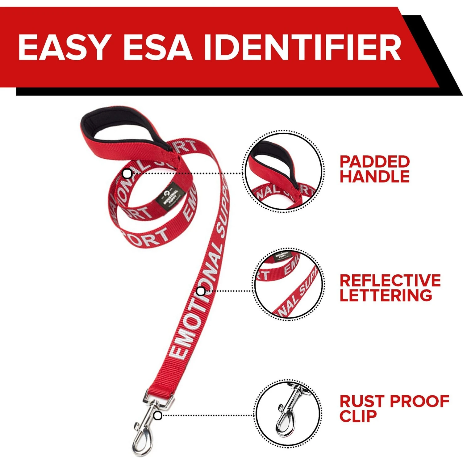 - Service leash with ‘Emotional Support’ in bold letters that show everyone your furry friend is hard at work.
