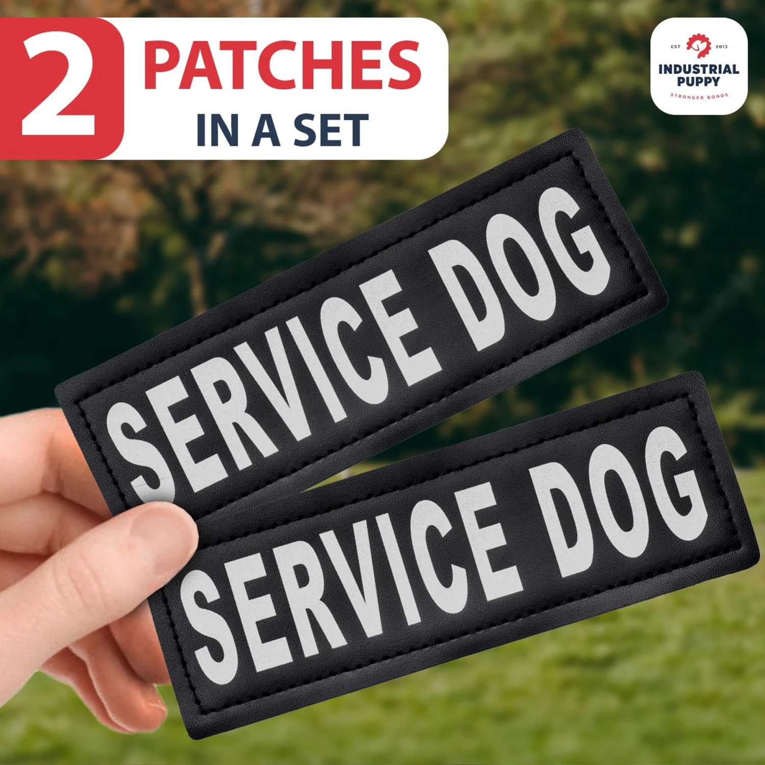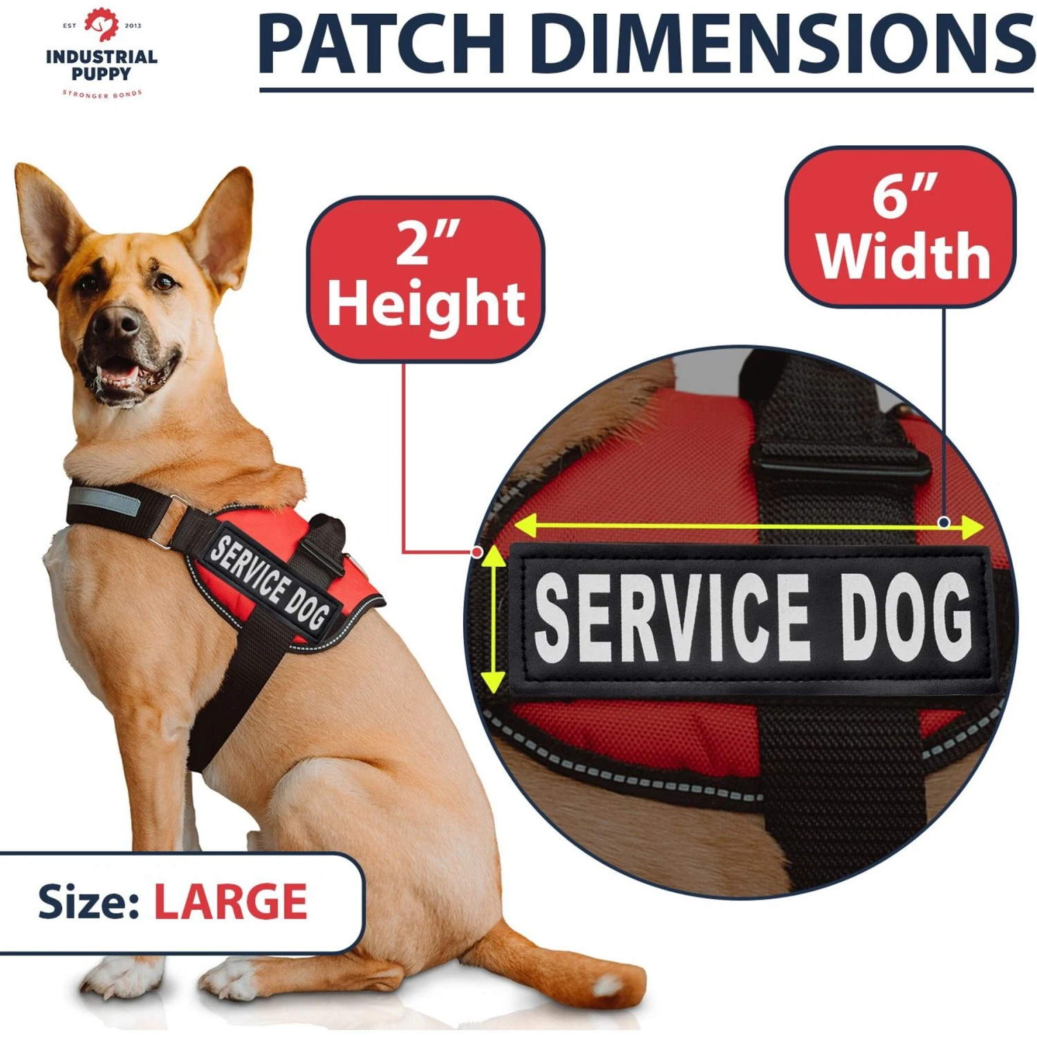 - Set of 2 removable “Service Dog” patches are the perfect addition to any Industrial Puppy harness.