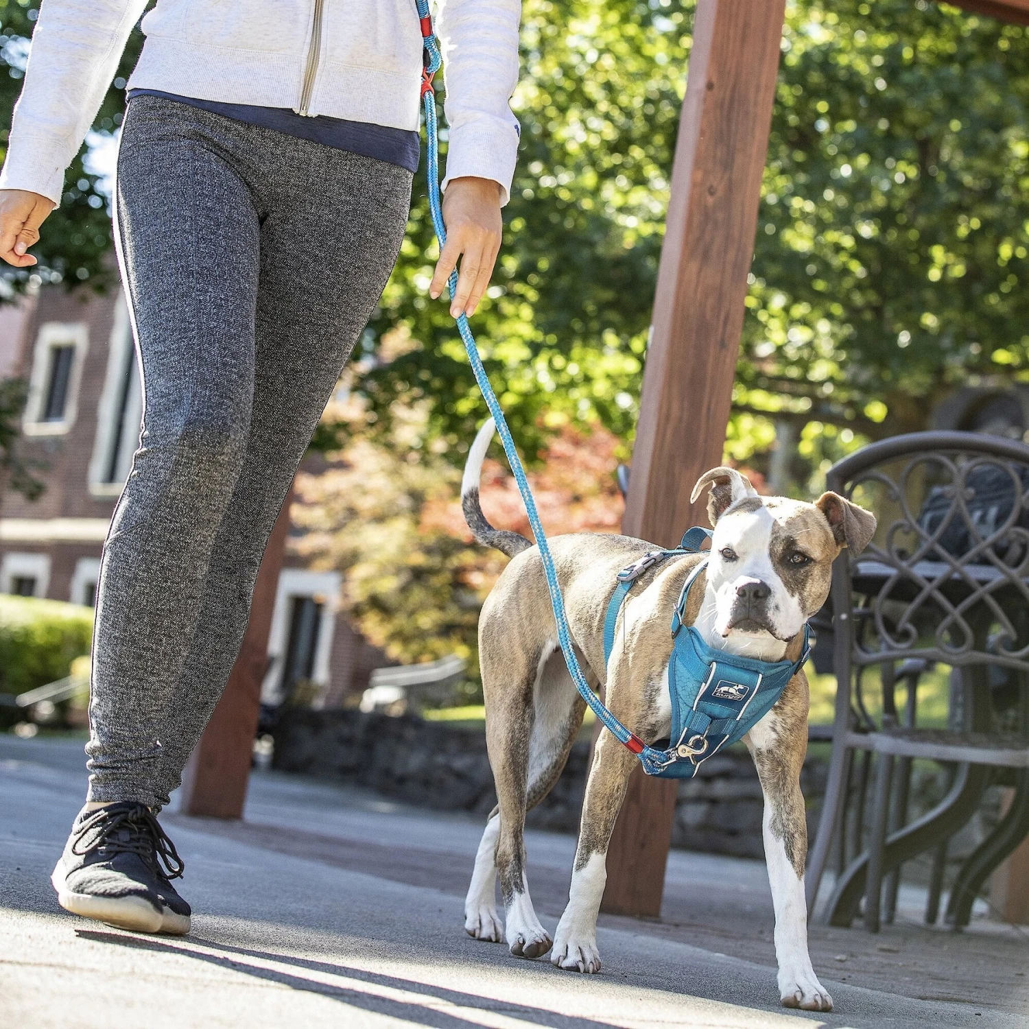 - Has a leash attachment on the front and the back.
