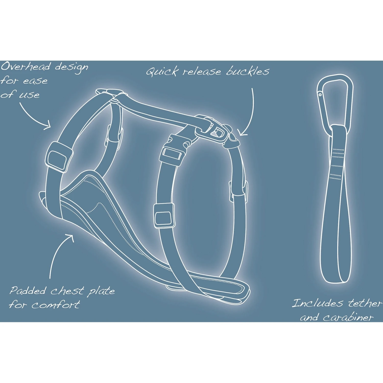 - Plastic UTX Weinerlock buckles make the harness quick and easy to fasten and take off.