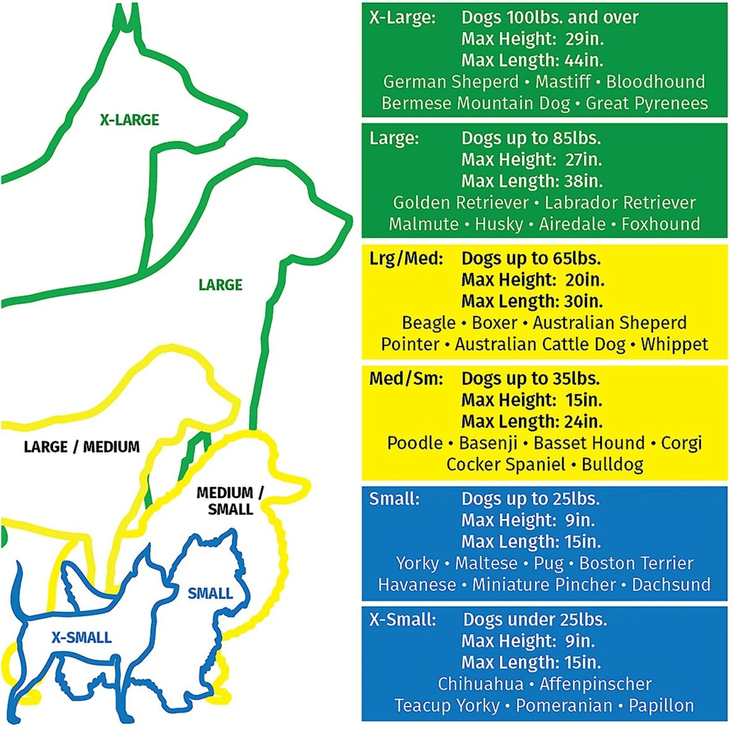 | Size | S: 24-in L x 18-in W x 21-in H, XXL: 54-in L x 37-in W x 45-in H, Med/L: 36-in L x 24-in W x 27-in H, L: 42-in L x 28-in W x 31-in H, XL: 48-in L x 30-in W x 33-in H, Med: 30-in L x 21-in W x 24-in H |