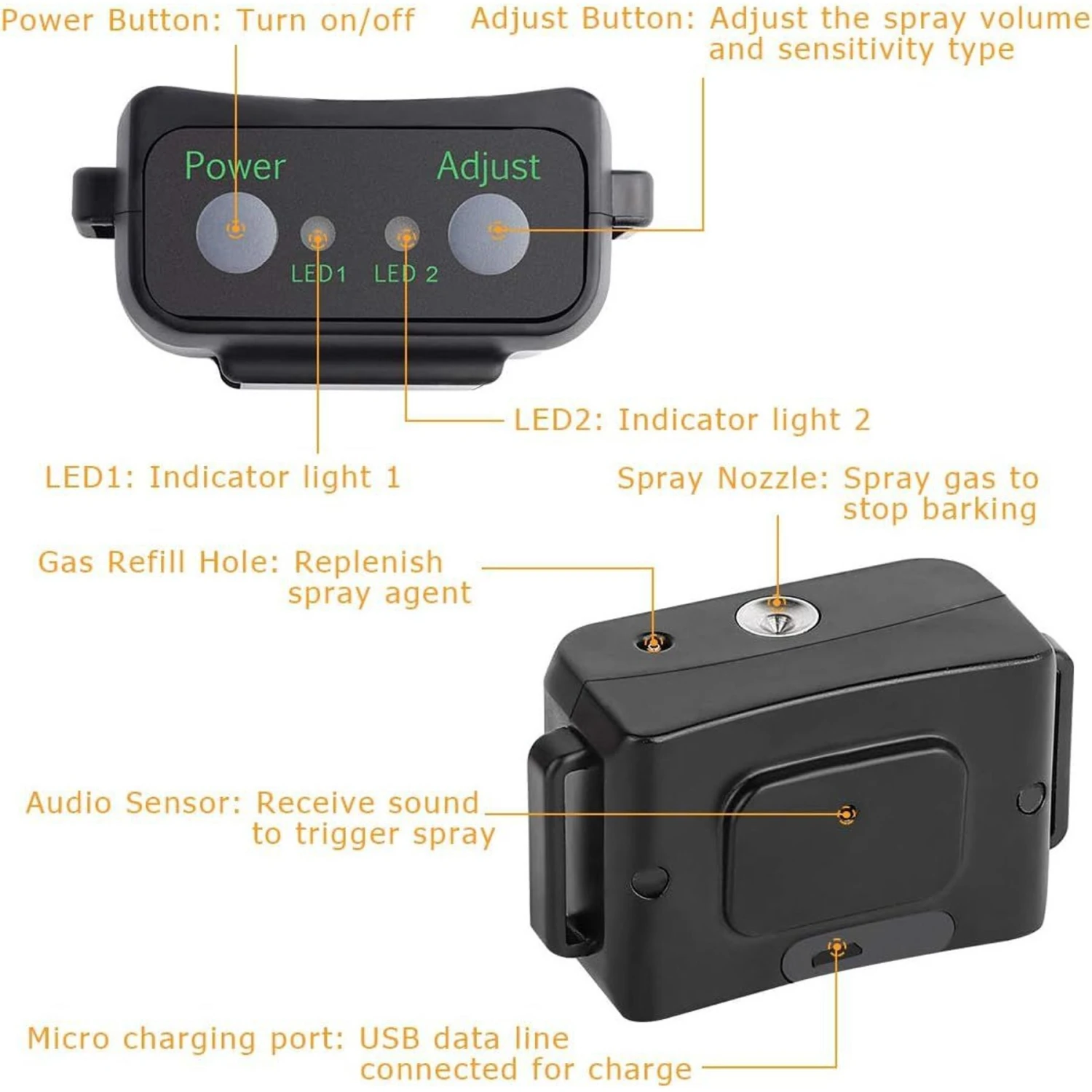 - Features adjustable spray volume and sensitivity levels and emits a burst of citronella or an unscented spray when barking is detected.
