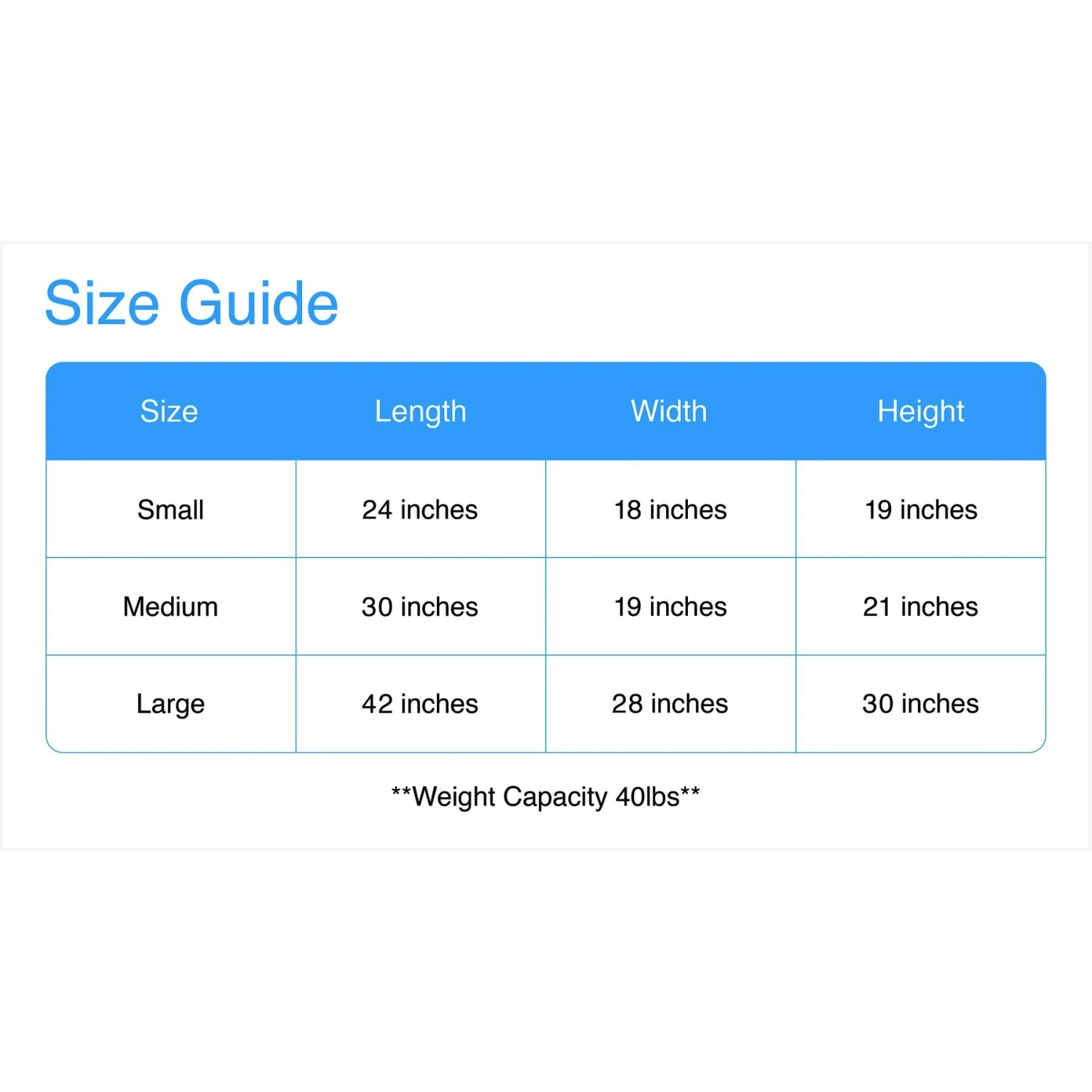 | Size | S: 24-in L x 18-in W x 19-in H, L: 42-in L x 28-in W x 30-in H, Med: 30-in L x 19-in W x 21-in H |