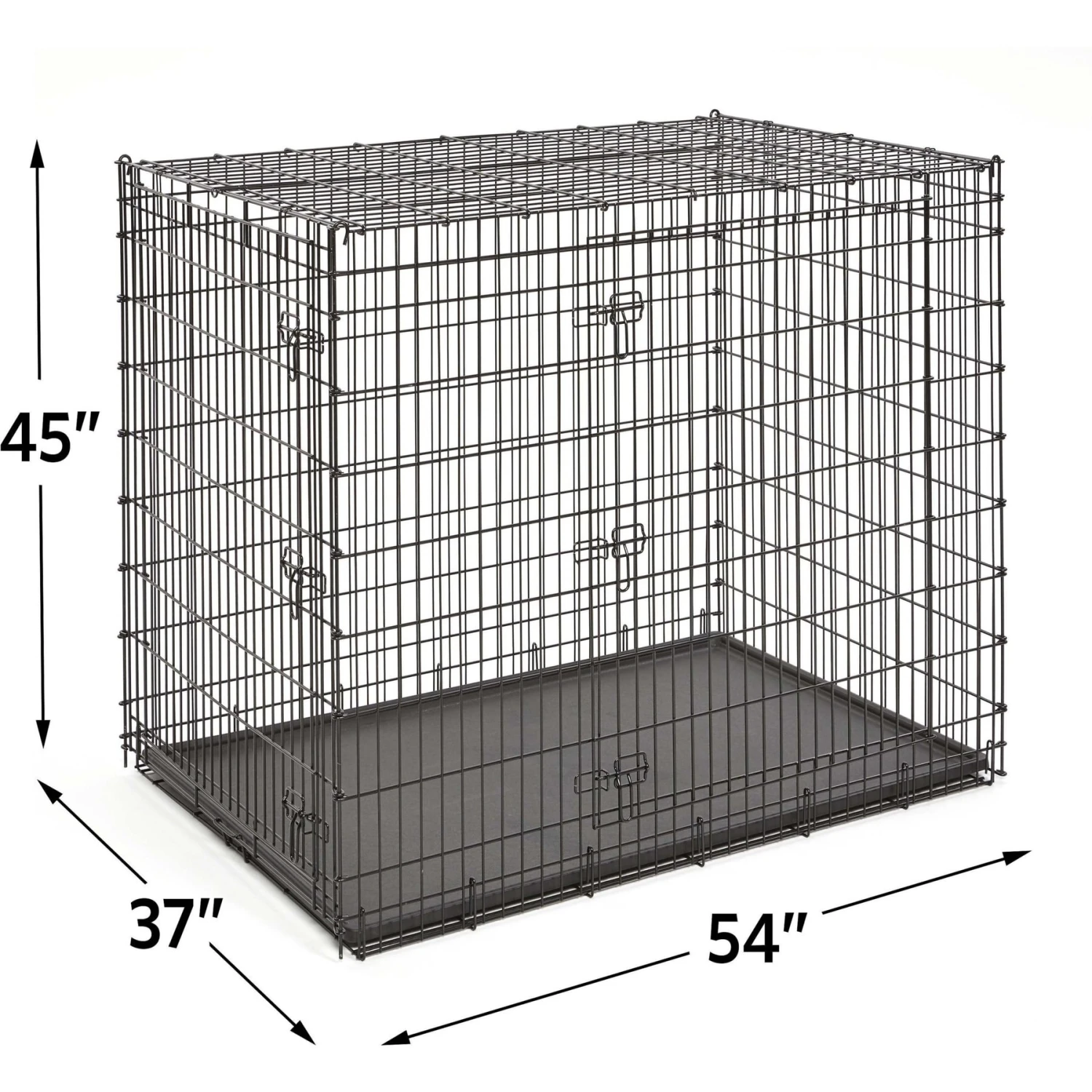 - Dog crate with double-door configuration for easy access and sturdy drop-pin assembly for your pal’s safety.