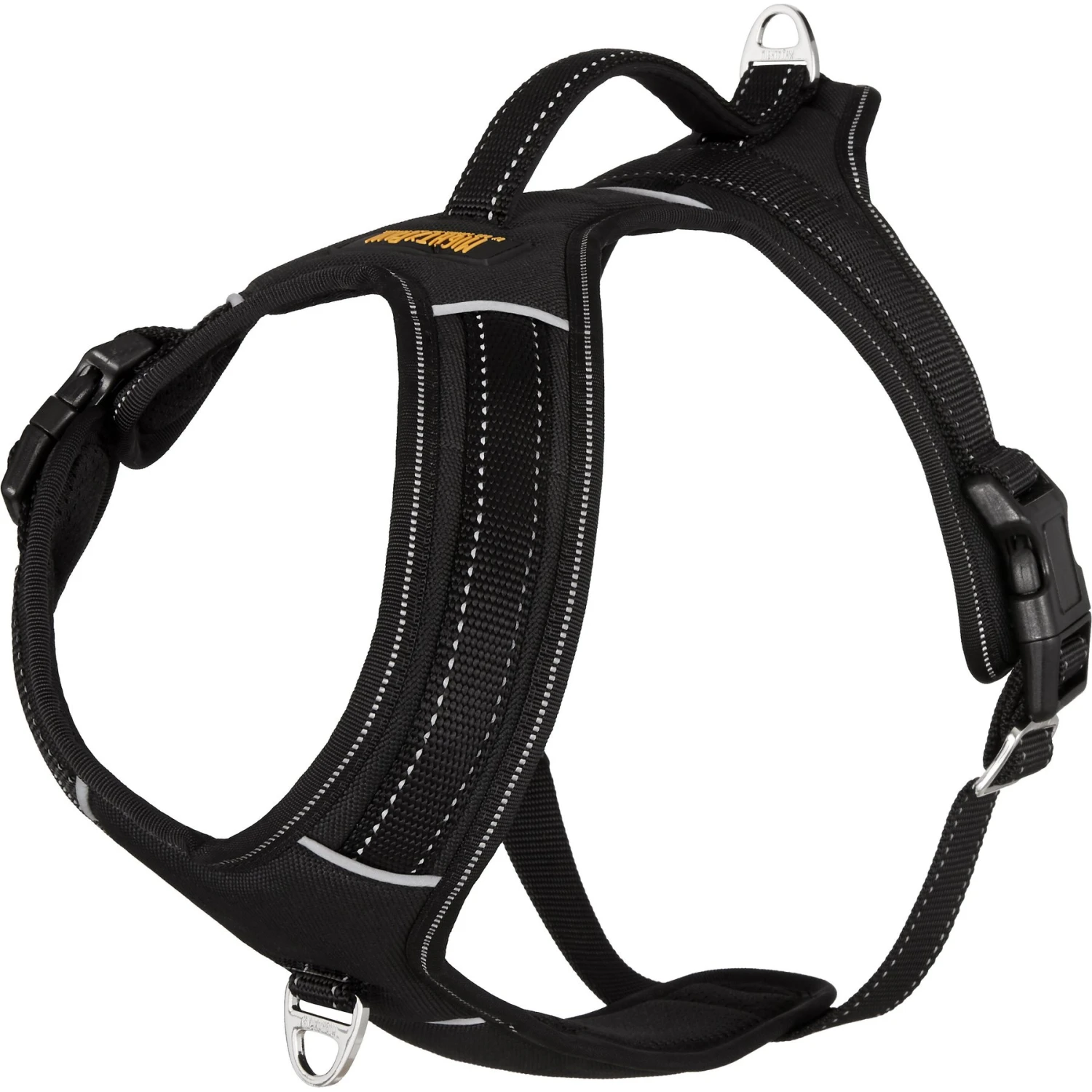 - Premium, weather-proof dog harness reduces the strain on your dog’s neck during walks.