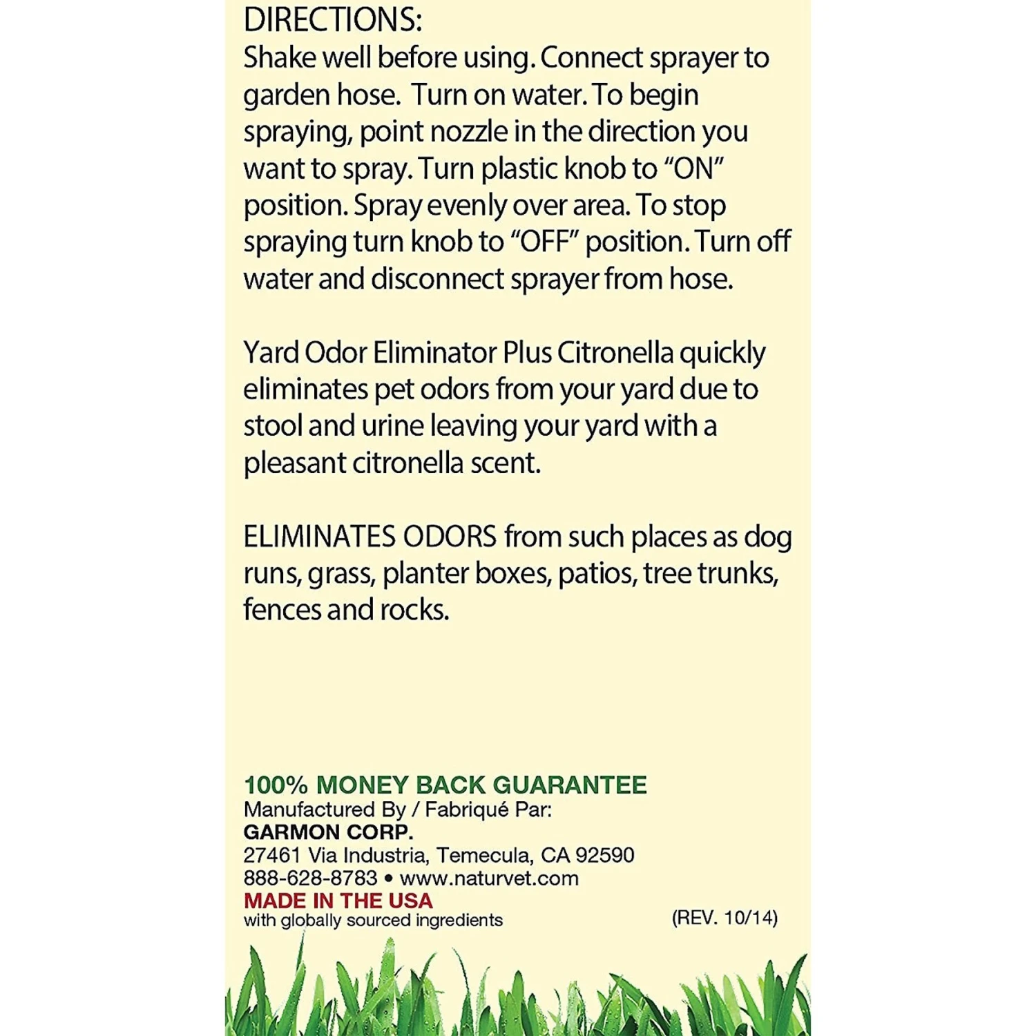 - Concentrated mix is designed to refill the NaturVet Yard Odor Eliminator Plus with Citronella.