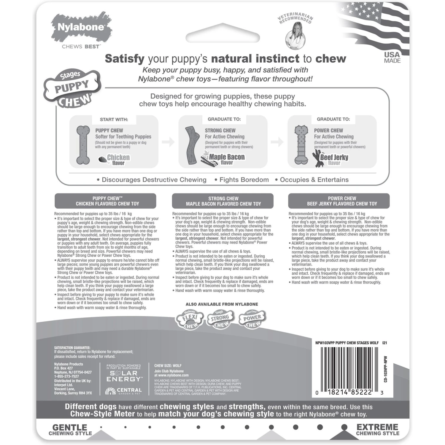 - Includes a durable power toy with delicious beef jerky flavor.