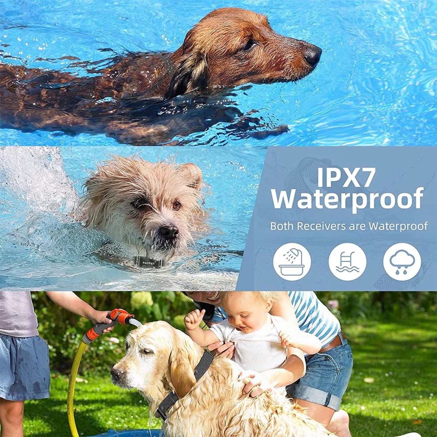 - Waterproof design helps keep your pup safe in the rain, at the beach or by the pool.