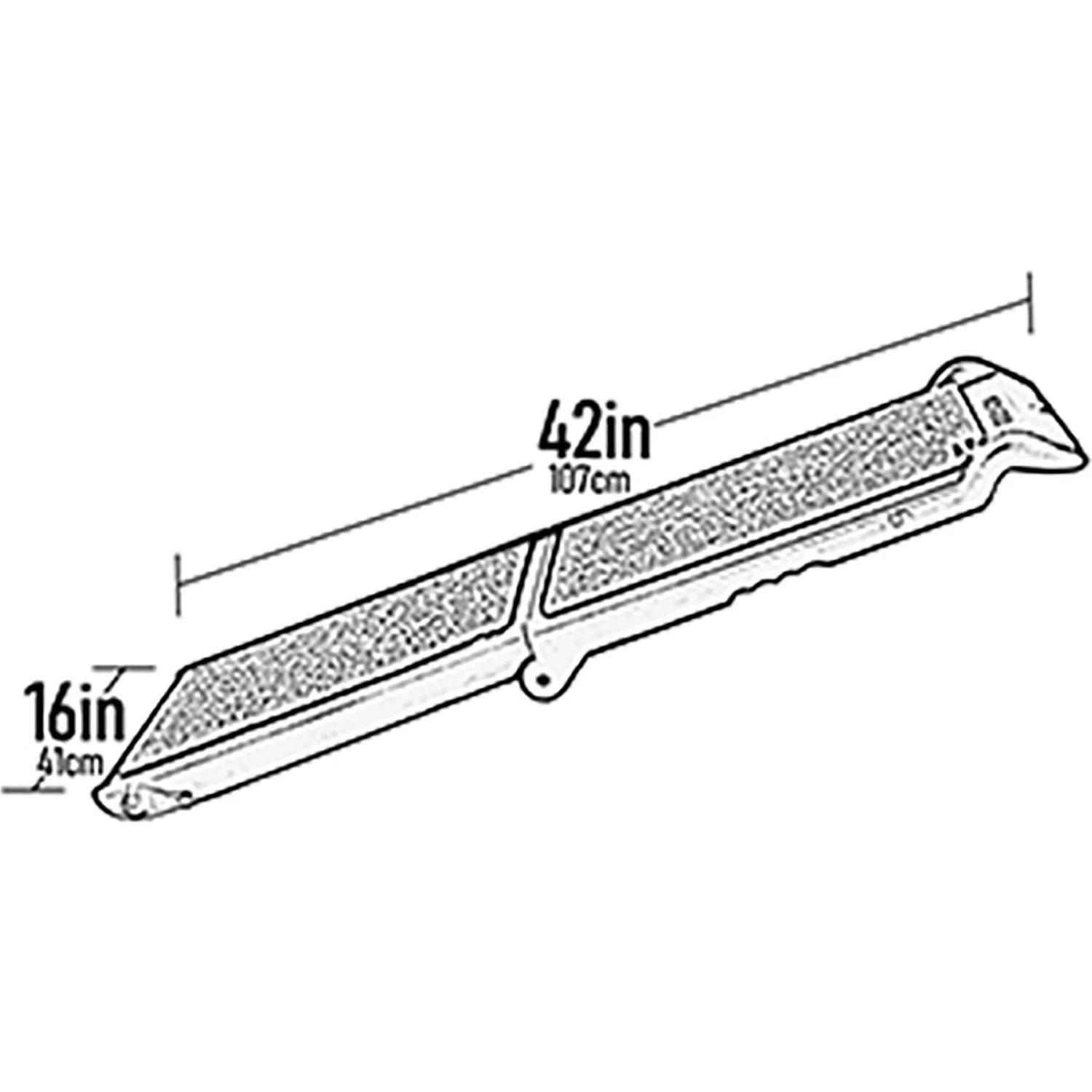 - Ramp measures 42 x 16 inches when unfolded for use; maximum capacity is 200 pounds.
