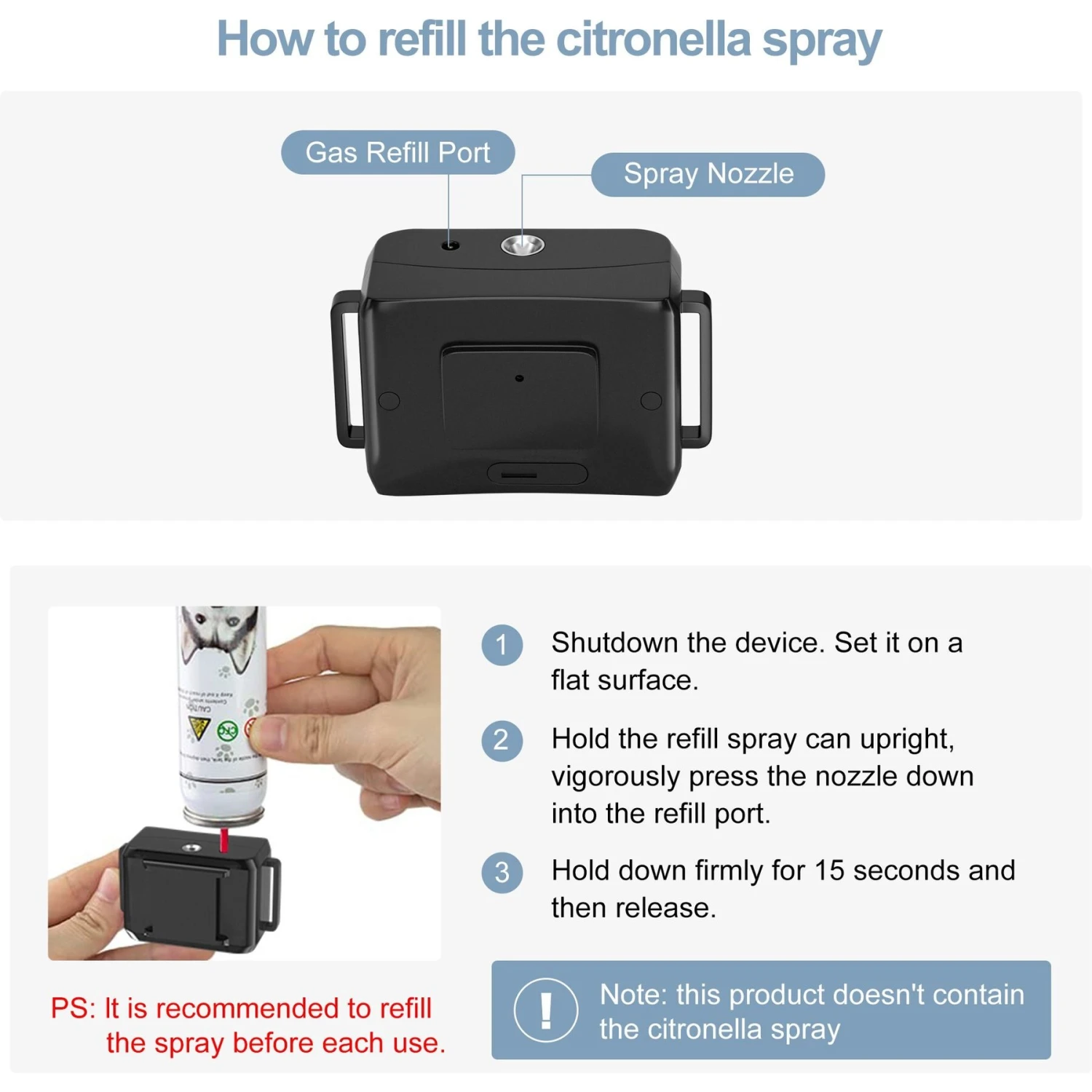 - Automatically detects when your dog is barking and emits a burst of citronella spray (sold separately) to help deter loud, excessive barking.