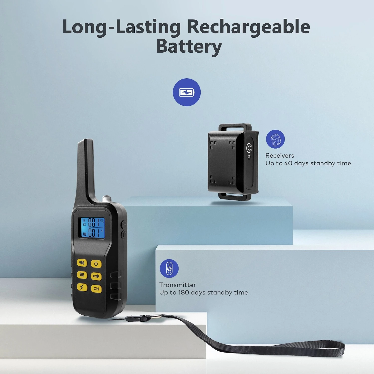 - Remote control works over a long distance, which means you can reach your pup when he’s up to 3,300-ft away in an open area.
