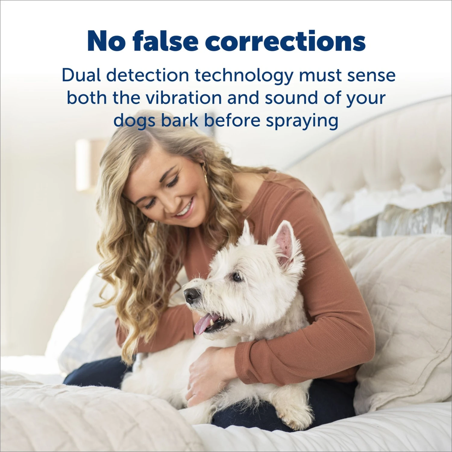 - A burst of safe, citronella-scented spray is released to help control your pal’s barking.