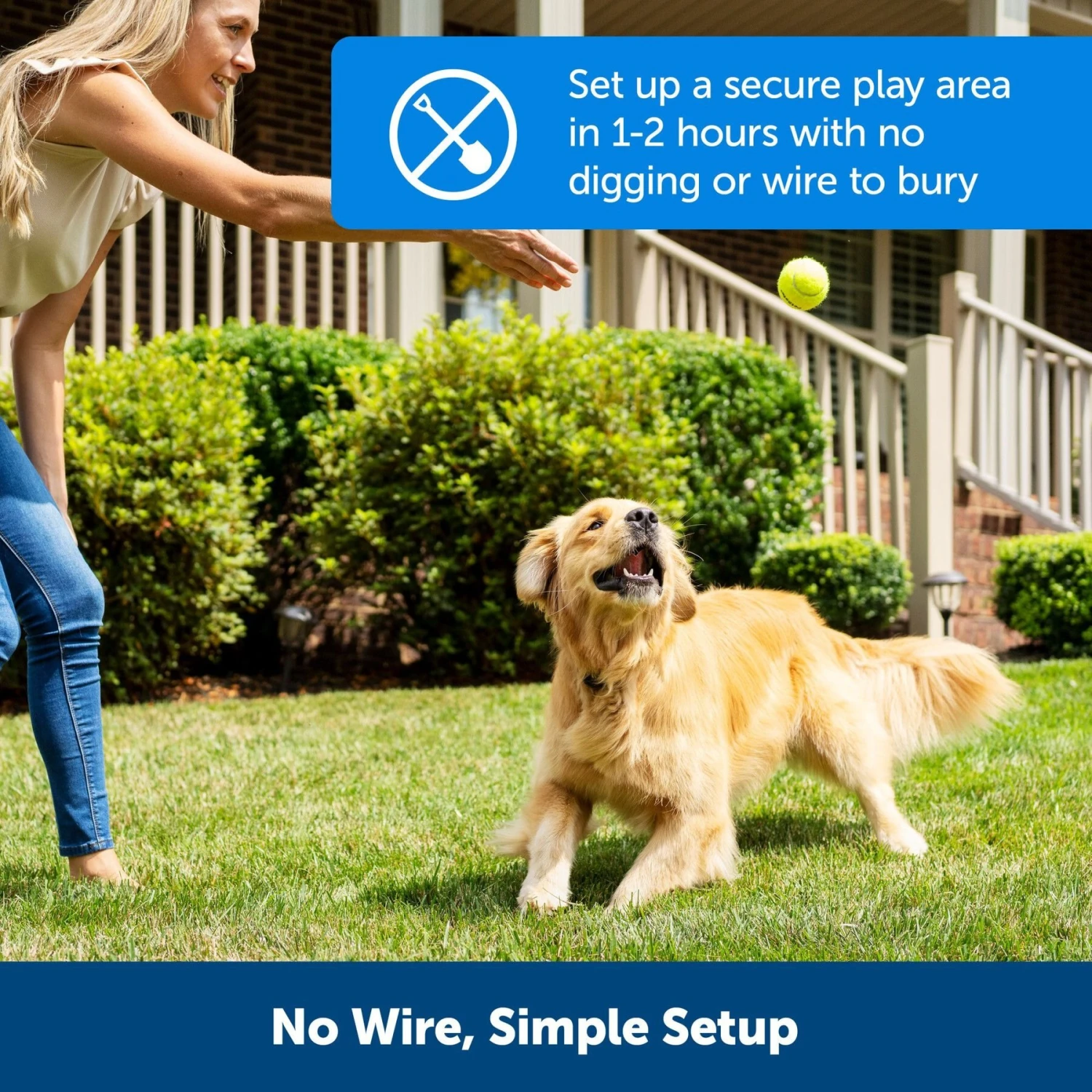 PetSafe Stay & Play Compact Wireless Dog & Cat Fence—Let your furry friend play and rest safely outdoors with the PetSafe Stay & Play Compact Wireless Dog Fence! This fence allows you to create a circular boundary that extends up to 3/4 of an acre. It sets up in as little as one to two hours and is paw-fect for camping or traveling (outlet required). This fence system features an LCD screen that shows you how far your pet’s play area expands, and it notifies you if there is an error or warning with the fence. Simply place the transmitter indoors and plug it into an outlet—that’s it! It comes with a rechargeable PetSafe Stay & Play Wireless Fence Receiver collar and if you have more than one paw-tner, you can purchase additional receivers, so all your buddies can use the same wireless system!