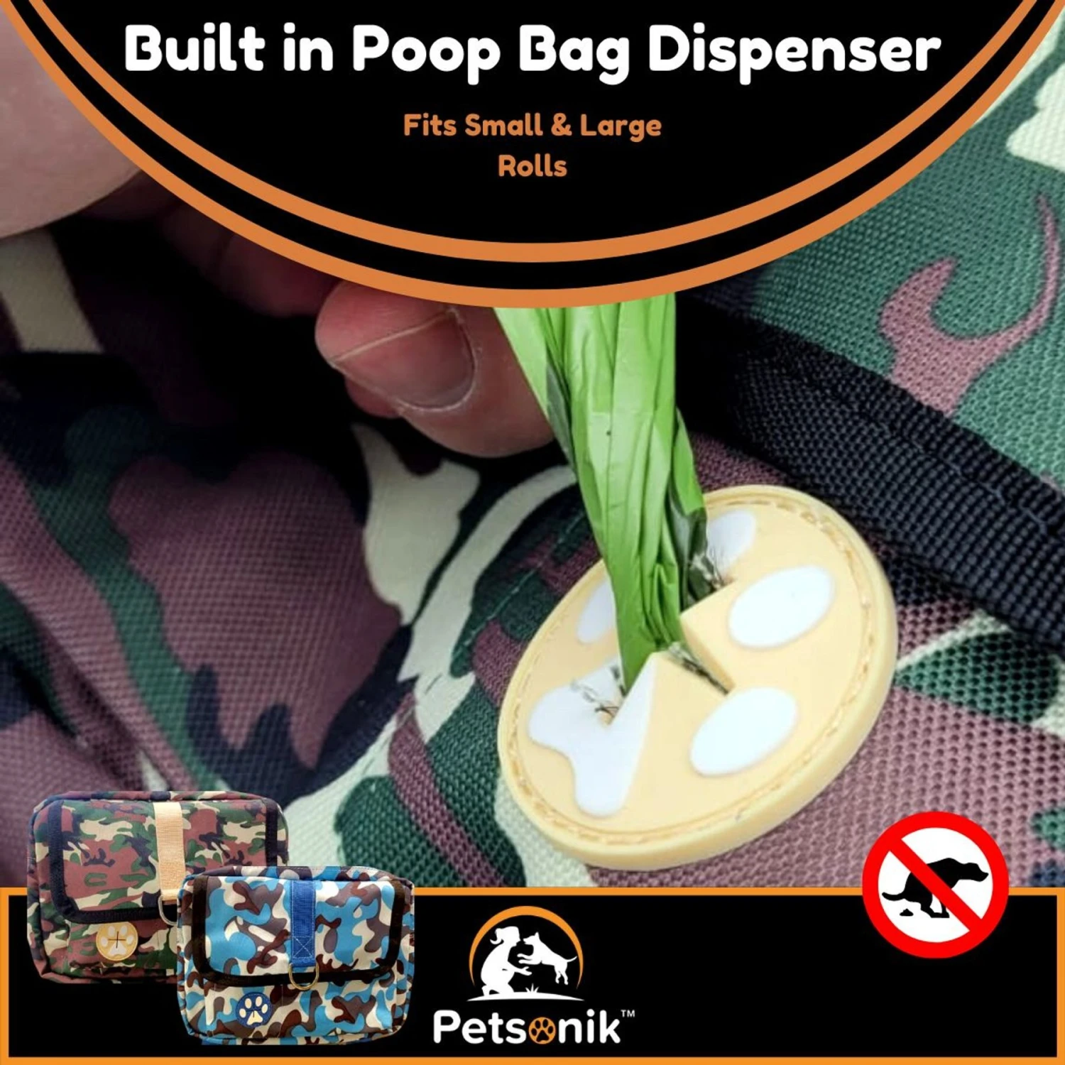 - Convenient built-in poop bag dispenser keeps messes at bay.