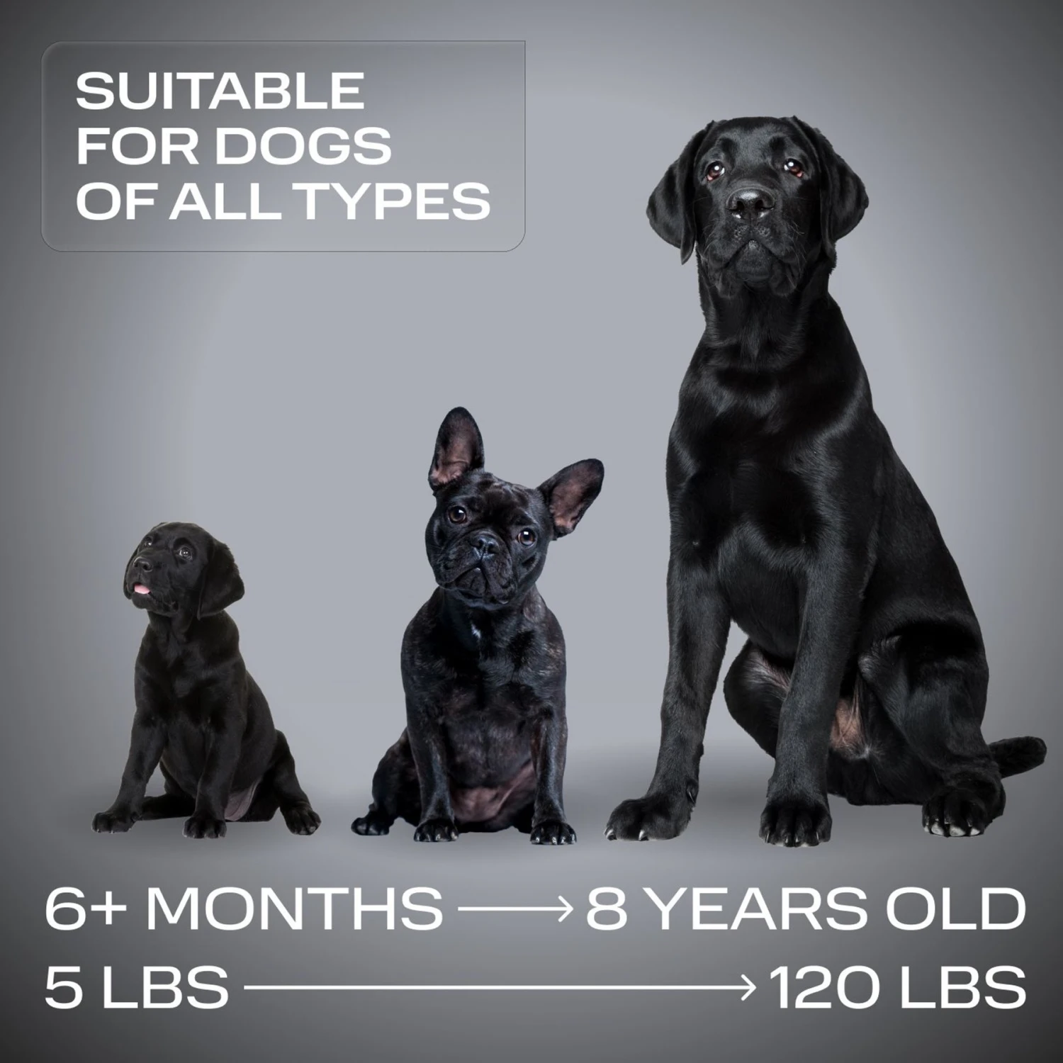 - Safe for use on dogs that weigh 5-120 pounds and puppies over 6 months of age!