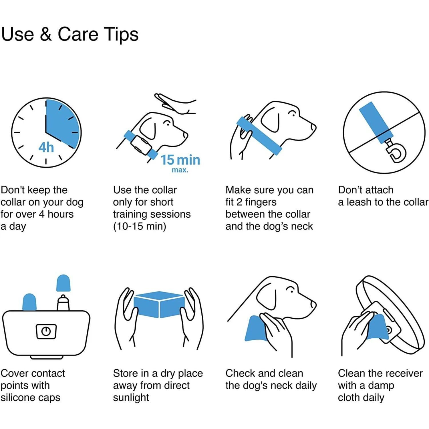 - 3 humane training modes include 8 vibration levels, 16 shock levels and an audible tone mode.