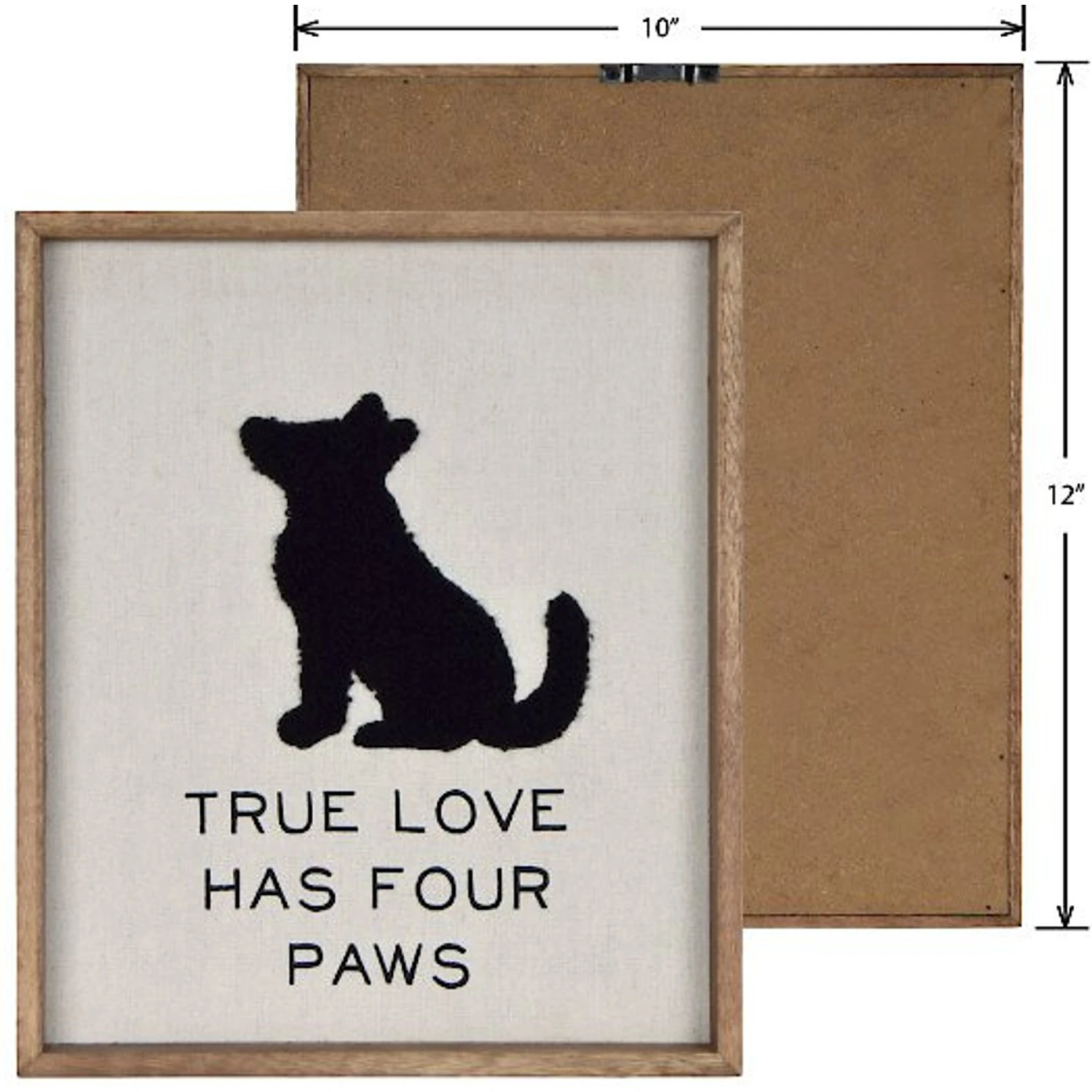 - Features the sweet sentiment “True Love Has Four Paws.”