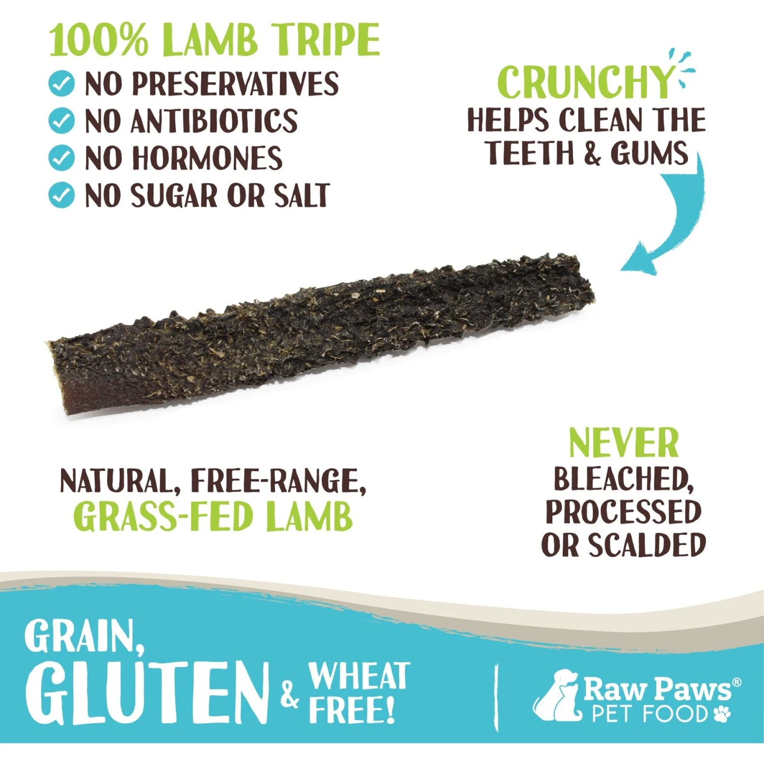 - All natural lamb tripe chew sticks produced from responsible sources with no added hormones or antibiotics!