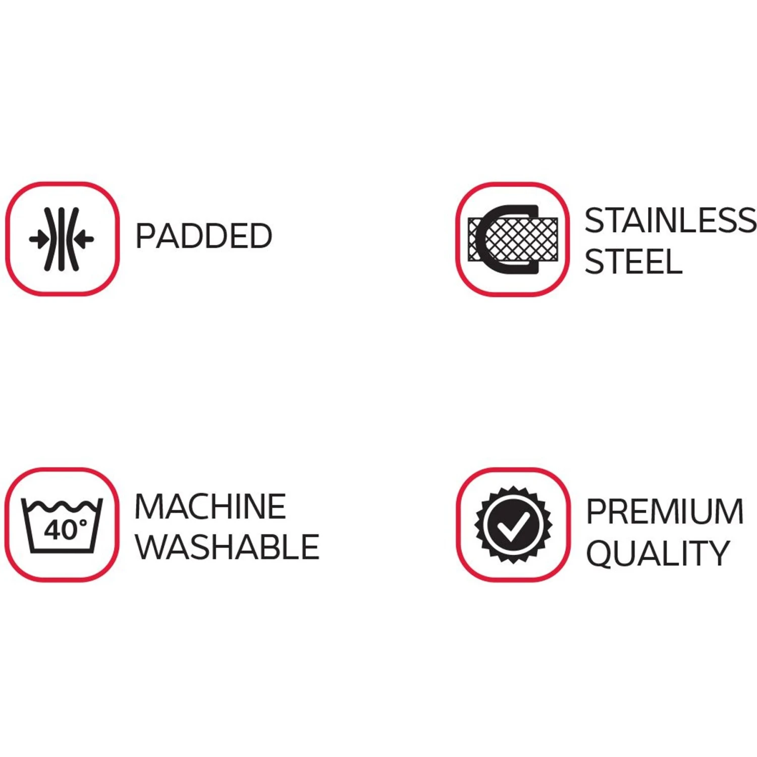 - Hard-wearing, water-resistant polyester shell, four webbing length adjusters and metallic trims along the top and sides for safety and visibility in low light conditions.